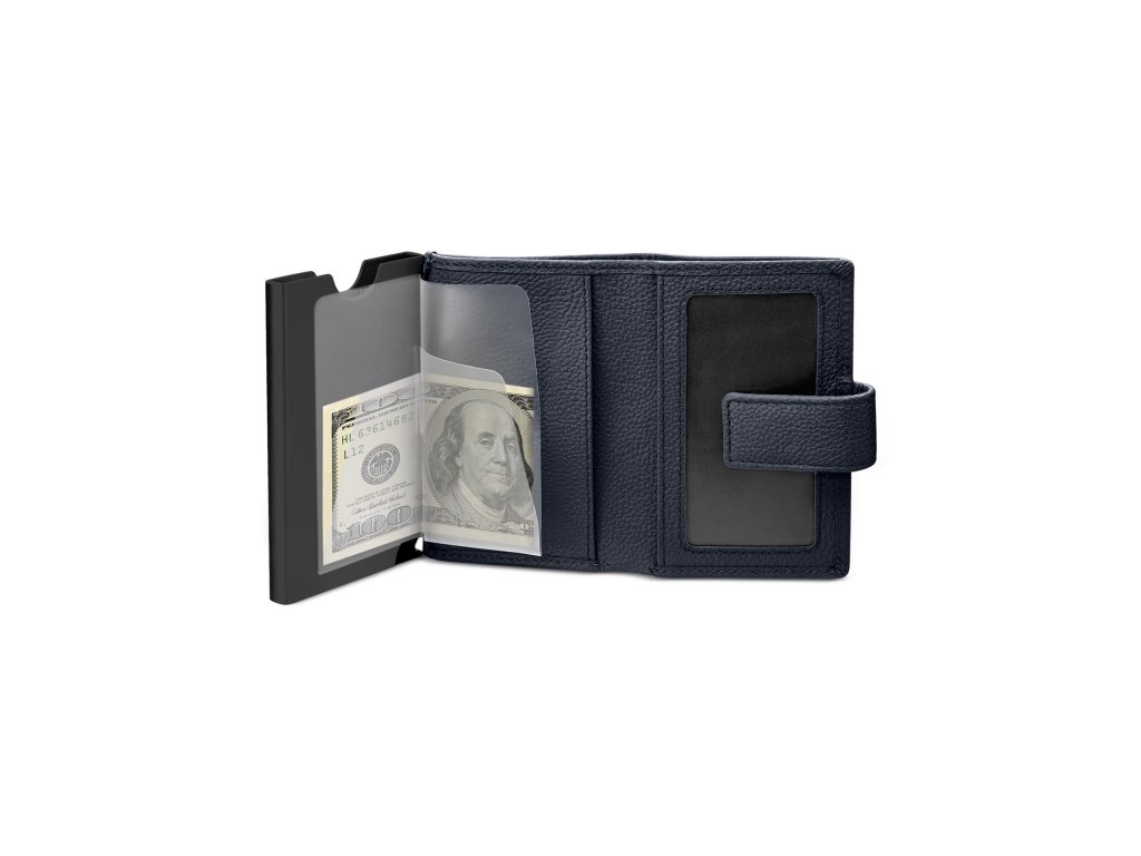 Chytrý výsuvný systém na 6 karet umožňuje mít všech důležité po ruce. Uvnitř nechybí přihrádka na bankovky, místo na doklady ani průhledná kapsa třeba na občanku nebo řidičák.
