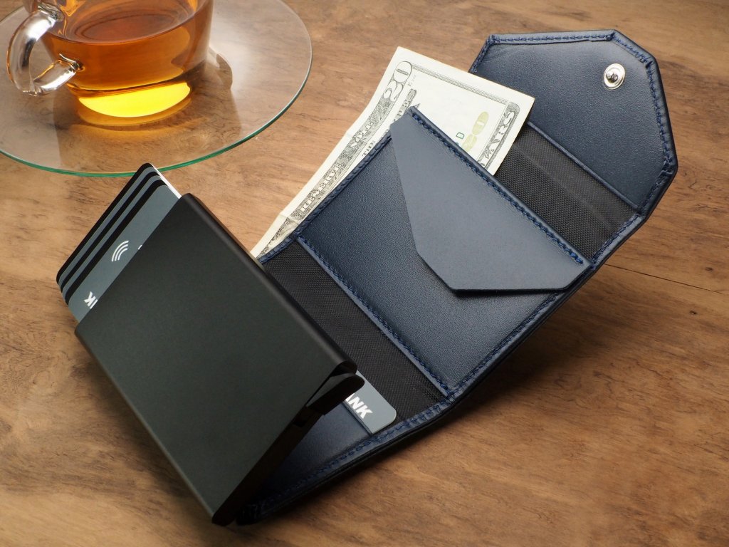Peněženka chrání peníze a citlivá data pomocí technologie RFID, která funguje jako ochrana před neautorizovaným skenováním čipových karet.