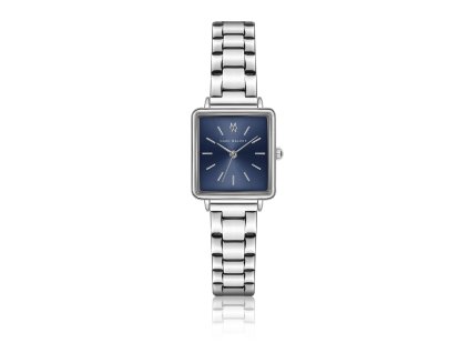 Dámské minimalistické hodinky s modrým hranatým číselníkem a tahem ve stříbrném tónu od Marc Malone.