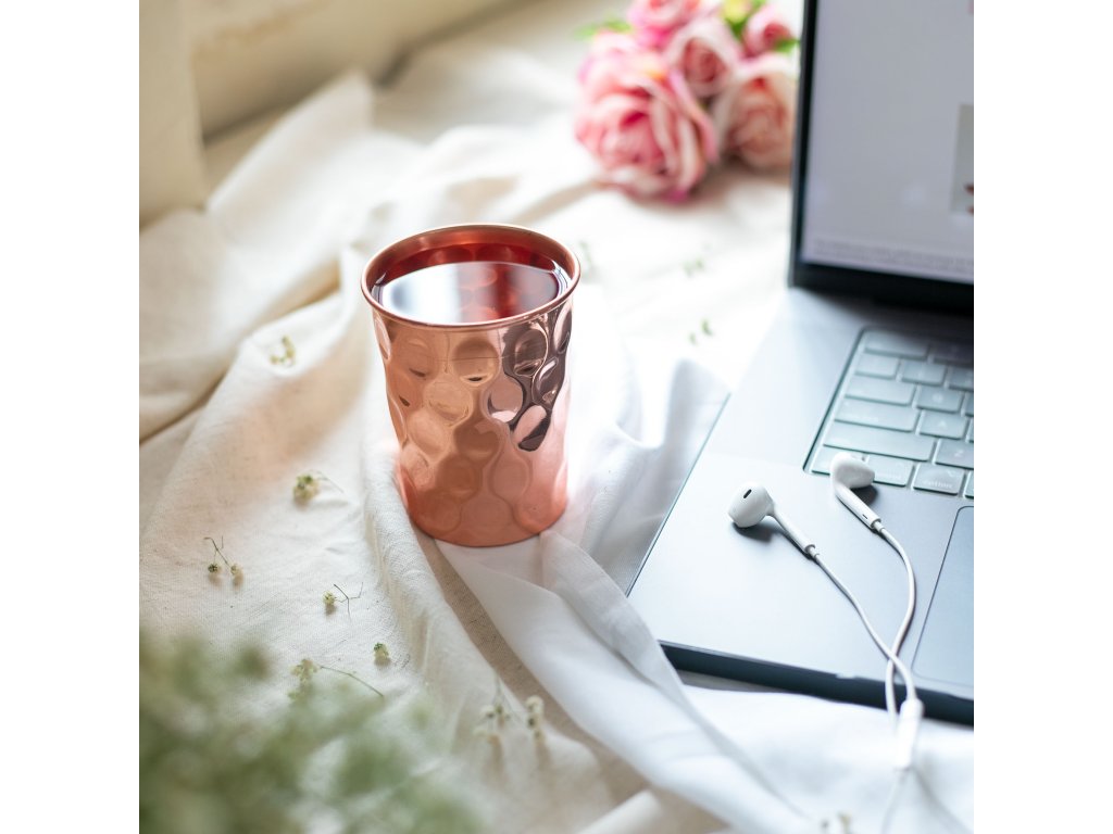 Udělejte si radost designovým hrnkem zhotoveným z mědi, známé svými antibakteriálními vlastnostmi.
