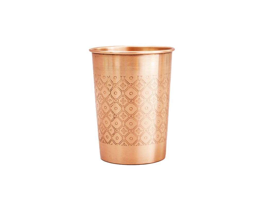 Měděný hrnek Forrest & Love o objemu 300 ml je lehký, praktický a udržitelný. Nese na sobě motiv orientální mozaiky, která vás lehce přenese do oázy klidu a meditace a zároveň z něj dělá i dekorativní doplněk do bohémského nebo minimalistického interiéru.