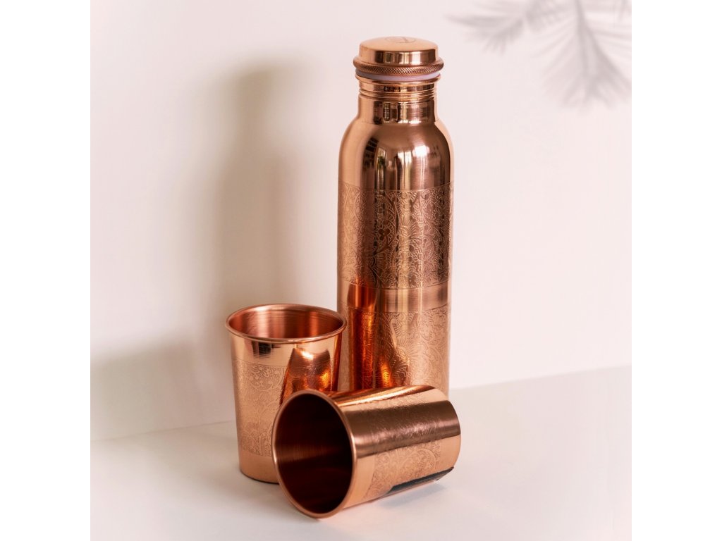 Udělejte z pití obyčejné vody nevšední zážitek a pořiďte sobě nebo svým blízkým set láhve a hrnků, netradičně z mědi. Měď je ušlechtilým kovem, který podle ajurvédy disponuje léčivým vlivem na lidský organismus.