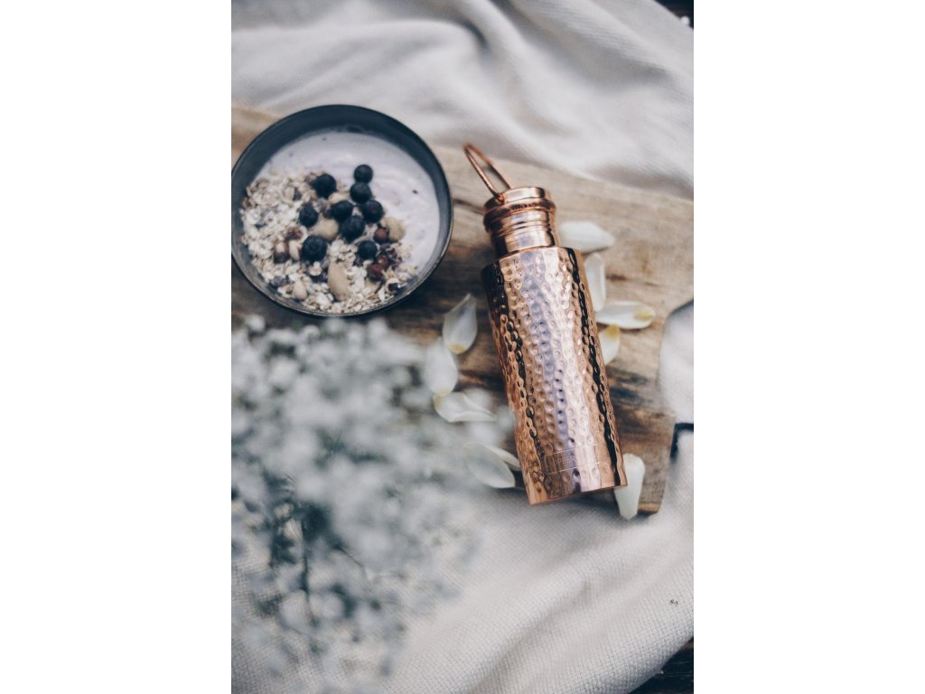 Trendy a praktická láhev z mědi, známé svými antibakteriálními vlastnostmi a odolností, vás bude doprovázet na každém kroku. Měď je ušlechtilým kovem, který podle ajurvédy disponuje léčivým vlivem na lidský organismus.