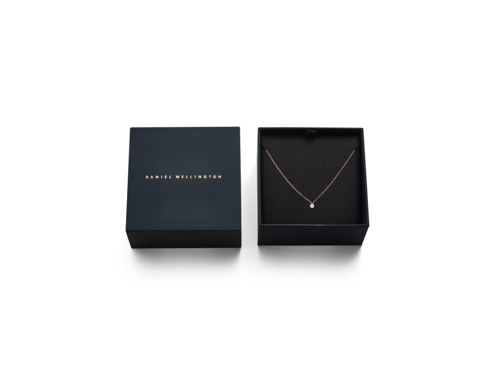 Ve středu náhrdelníku je kulatý krystal kubické zirkonie o průměru 3 mm, který je pevně uchycen na jemném řetízku tak, aby zachytil světlo s nenápadným třpytem. Díky subtilnímu provedení působí náhrdelník elegantně a lehce – lze jej nosit samostatně jako minimalistický šperk, nebo jej kombinovat s dalšími řetízky a náhrdelníky Daniel Wellington.