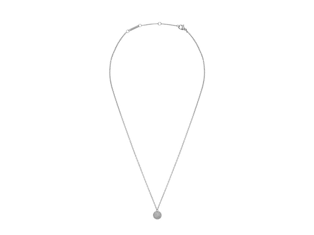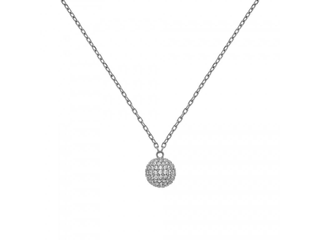 Decentní náhrdelník Pavé Crystal si vás získá svou jemnou elegancí a hravostí. Drobný řetízek, na němž je zavěšen přívěsek tvaru sféry osazený krystaly kubické zirkonie vám bude věrným doplňkem jak k pracovnímu kostýmu, tak i k volnočasovým outfitům. Přívěsek se na světle překrásně třpytí a jeho odlesky zaujmou nejedno oko.