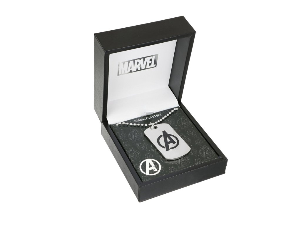 Kvalitní kuličkový řetízek s délkou 56 cm vyrobený z nerezové oceli nese ocelovou destičku ve tvaru psí známky s nepřehlédnutelným velkým písmenem „A“, jakožto symbolem Avengers. Destička je opatřena PVD vrstvou zaručující odolnost a lesk.