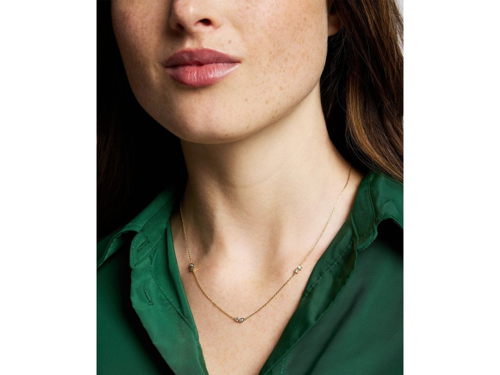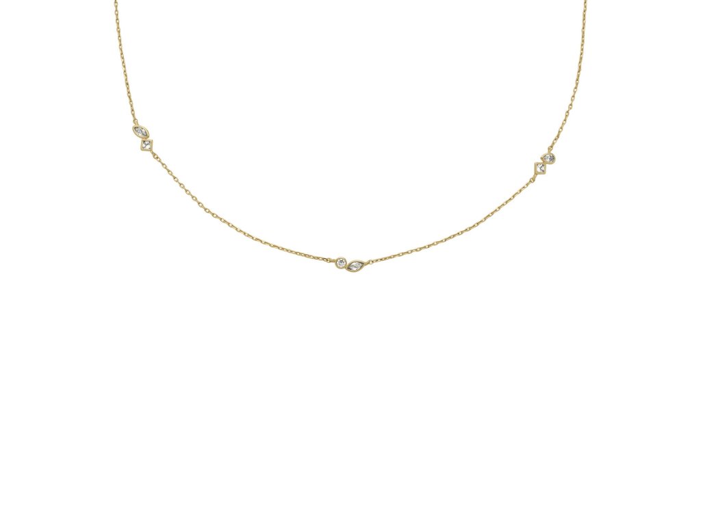 Zářivá zlatá barva mosazi v kombinaci s čirými krystaly působí jemně a sofistikovaně, takže se náhrdelník stane univerzálním doplňkem – ať už jej budete nosit samostatně, nebo v kombinaci s dalšími oblíbenými šperky.