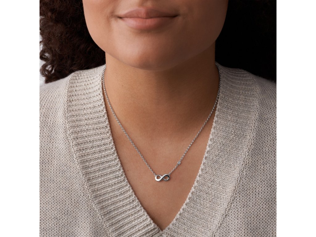 Dámský náhrdelník Fossil Infinity je elegantní šperk, který nese silný symbolický význam. Přívěsek ve tvaru nekonečna doplněný čirým krystalem vyjadřuje věčnost, spojení a nekonečné možnosti – motiv, který nikdy nevyjde z módy.