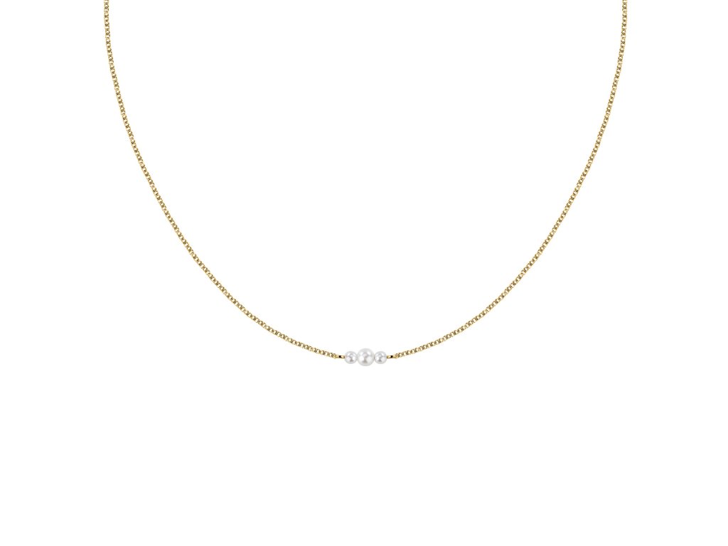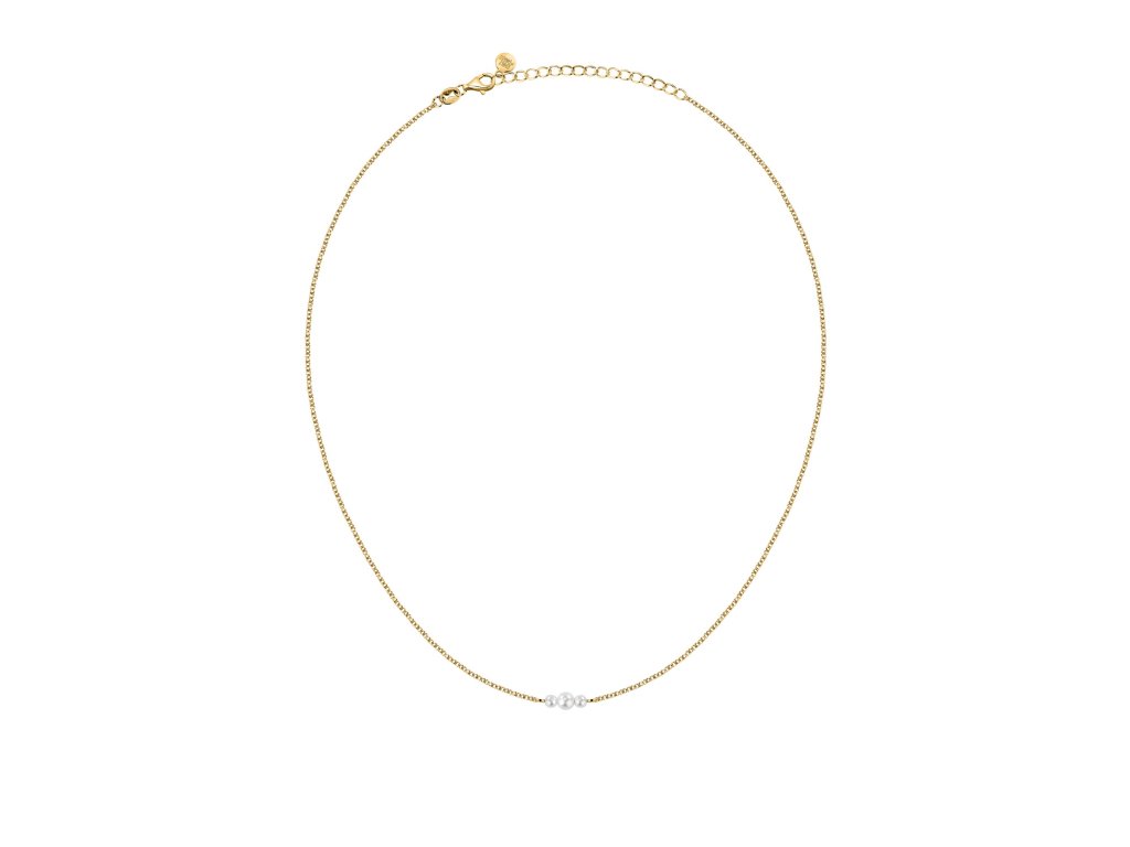 Dámský náhrdelník z kolekce Emily in Paris se třemi drobnými pravými perlami působí na dekoltu velmi něžně a elegantně. Jeho jemný design odráží pařížský šarm a dodává outfitu romantický dotek.