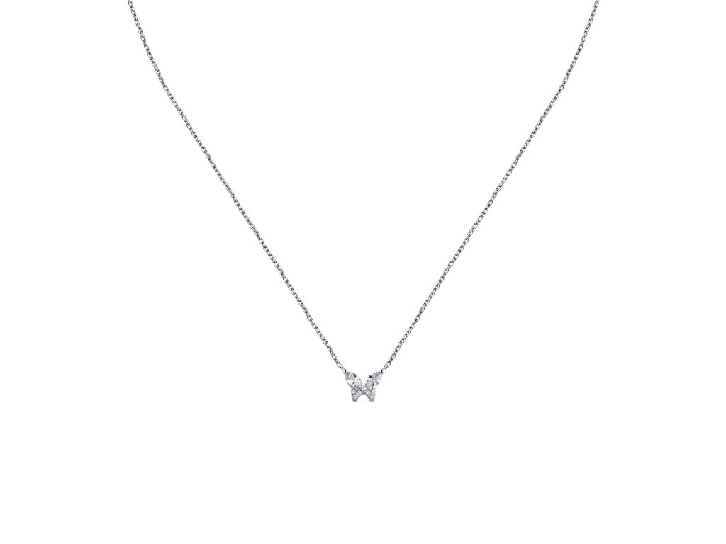 Dámský náhrdelník z kolekce Emily in Paris s dekorem ve tvaru motýlka působí něžně a hravě. Jemně třpytivé zirkony dodávají šperku jiskru, která zvýrazní váš look a vnese do něj svěží lehkost, kterou má ve svém příběhu i Emily.