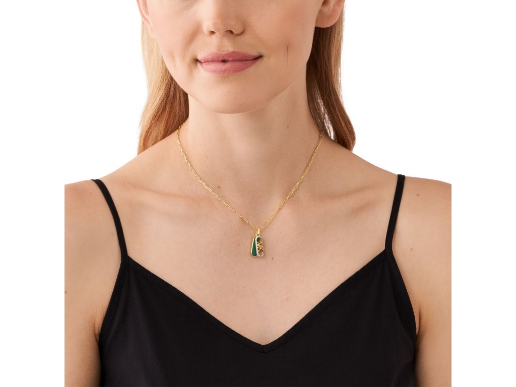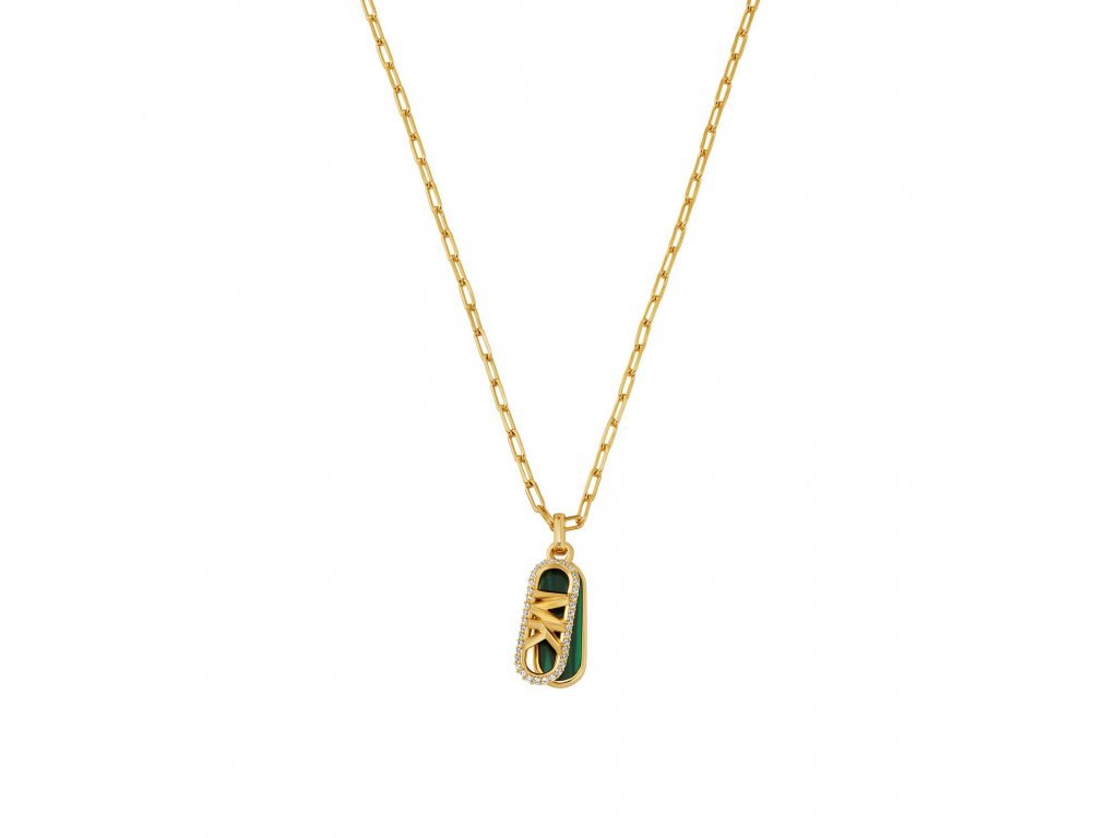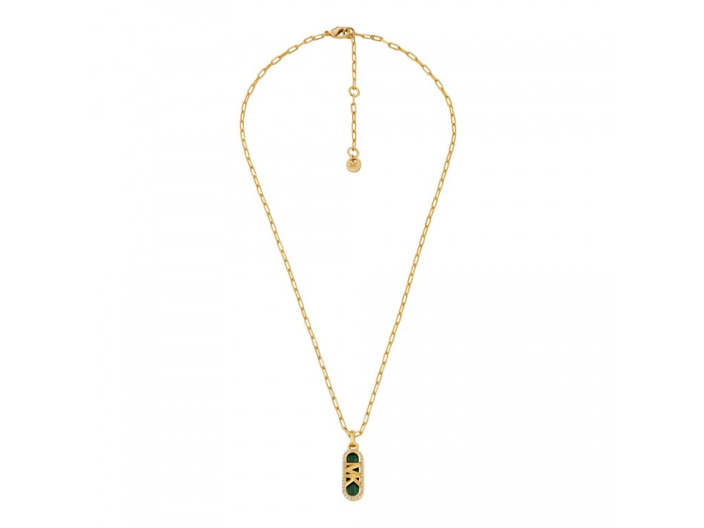 Přitažlivý náhrdelník v atraktivní barevné kombinaci luxusní zlaté a exkluzivní smaragdově zelené pro ženy, které baví styl Michael Kors.