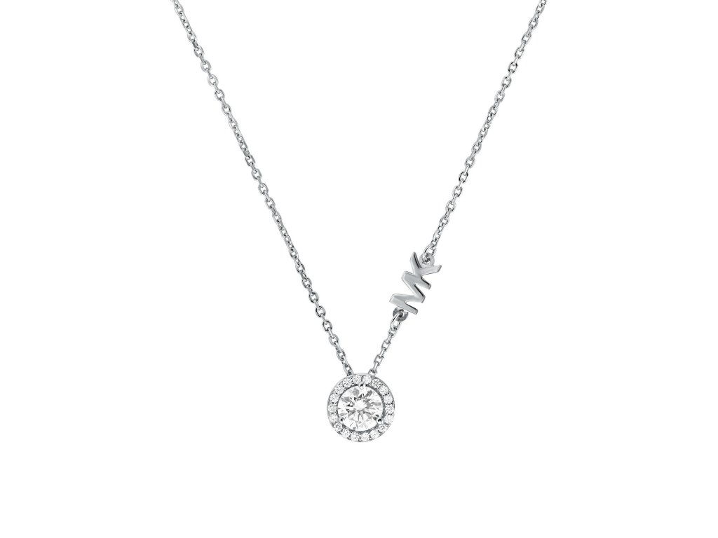 Náhrdelník je vyroben ze stříbra. Zdobí jej logo MK po obvodu a kulatá ozdoba s několika třpytivými zirkoniemi. Jejich lesk společně se střídmým designem a kvalitním materiálem z něj dělá velmi ženský a nadčasový doplněk.