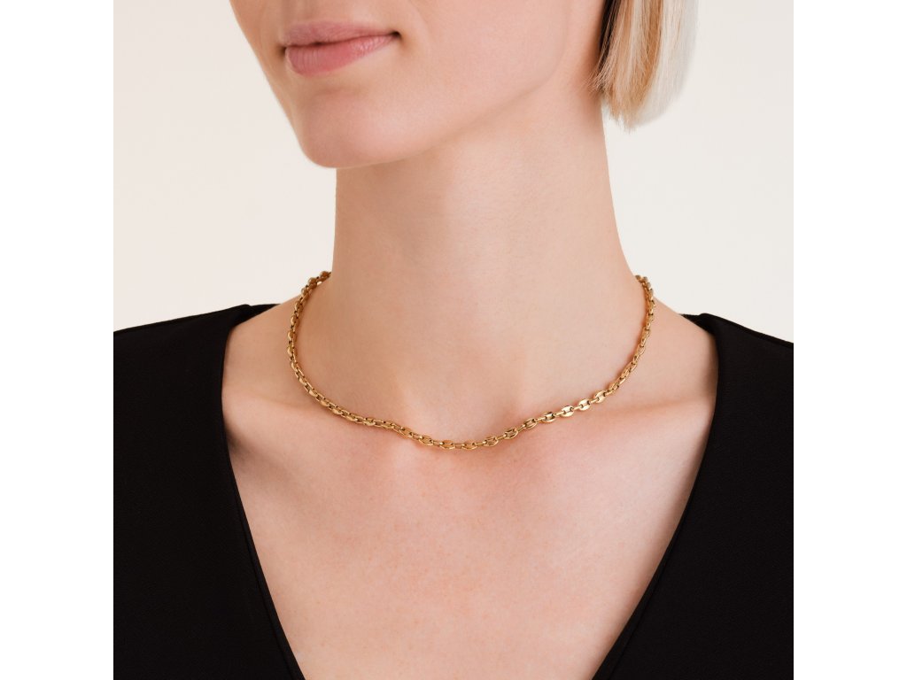 Jemně lesklý povrch a pravidelné zaoblené tvary vytvářejí elegantní rytmus kolem krku – ideální pro ženy, které hledají něco výjimečného.