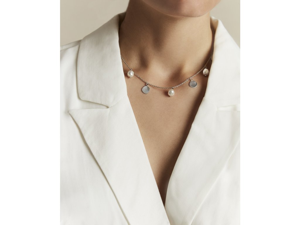 Rosefield Multi Shell and Pearl Charms Necklace Silver JMSPNS-J162