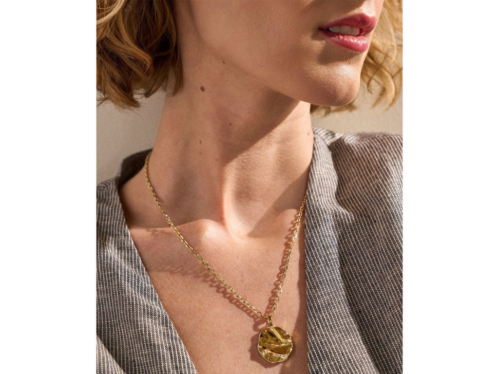 Organický tvar medailonku ve zlaté barvě je decentní, ale přesto nepřehlédnutelný – dokonale vystihuje čistý a nadčasový charakter skandinávského designu.