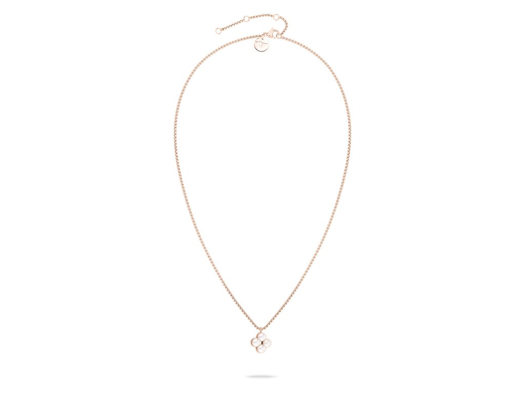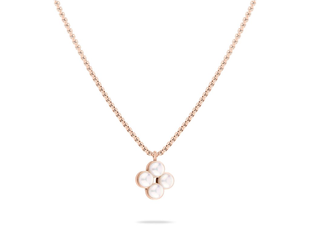 Dámský náhrdelník Tamaris v růžovozlaté barvě je jemným a ženským šperkem, který dodává outfitu hebkost, eleganci a decentní třpyt. Minimalistický přívěsek osazený čtyřmi perleťovými kamínky působí čistě, harmonicky a přirozeně zvýrazňuje dekolt bez rušivého efektu.