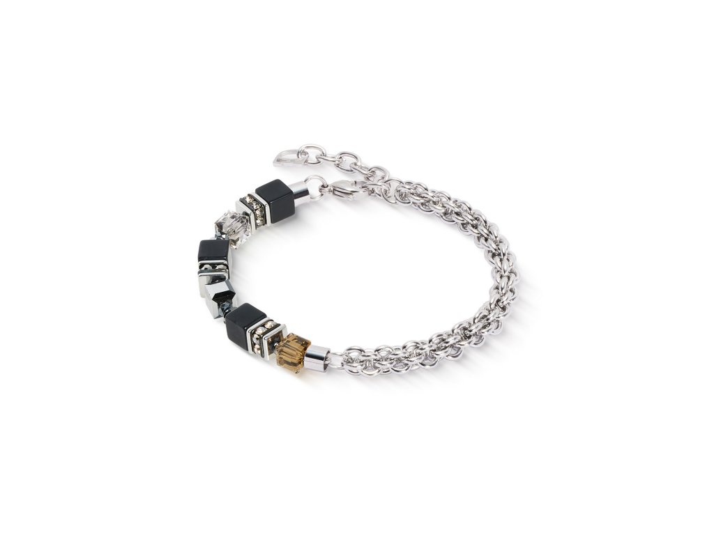Dámský náramek Coeur de Lion Iconic Evolution pracuje s výrazným kontrastem a asymetrií, které jsou pro tuto kolekci typické. Jedna polovina náramku má jemný, řetízkový charakter, zatímco druhá je tvořena střídáním tmavých a světlých tónů s třpytivými akcenty. Výsledkem je moderní a vizuálně zajímavý celek.