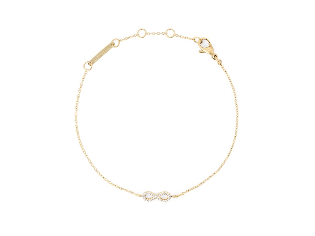 Vyroben z ušlechtilé oceli se zlatou povrchovou úpravou, s nastavitelnou délkou 15,5–18,5 cm. Symbol nekonečna zde vyjadřuje rovnováhu, spojení a tichou sílu – každodenní eleganci s osobním významem.
