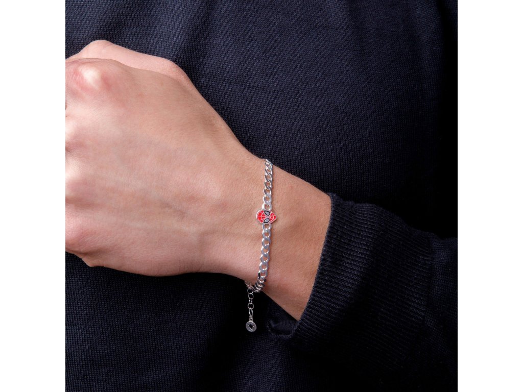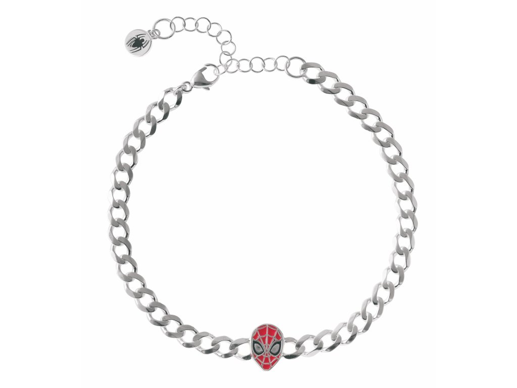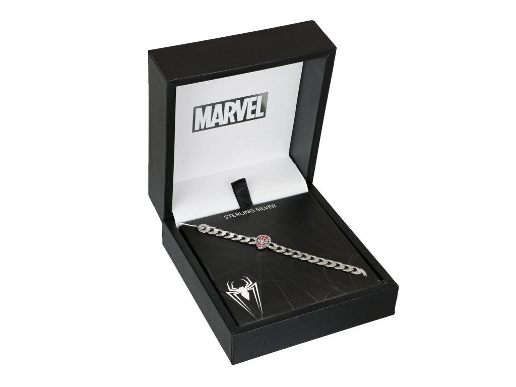 Řetízkový náramek složený z velkých oček je vyroben ze stříbra ryzosti 925/1000. Hlavním prvkem je detailně zpracovaná hlava Spider-Mana, která je zdobena červeným smaltem. Pavoučí symbol Spider-Mana, dekorovaný černým smaltem zdobí konec adjusty.