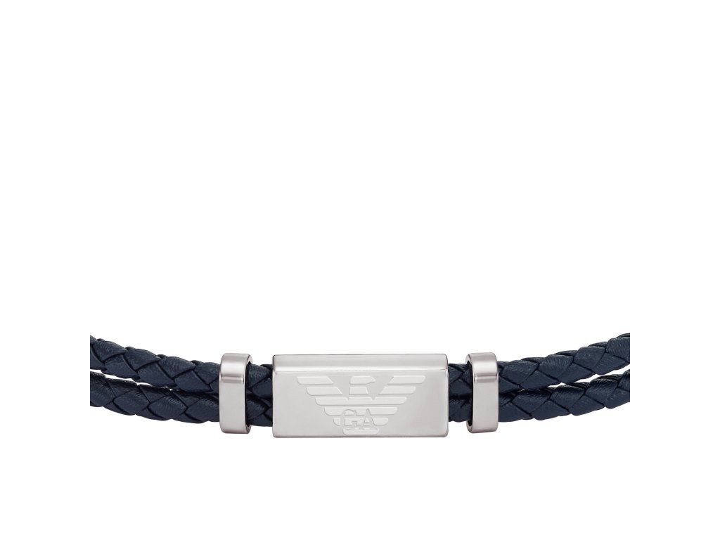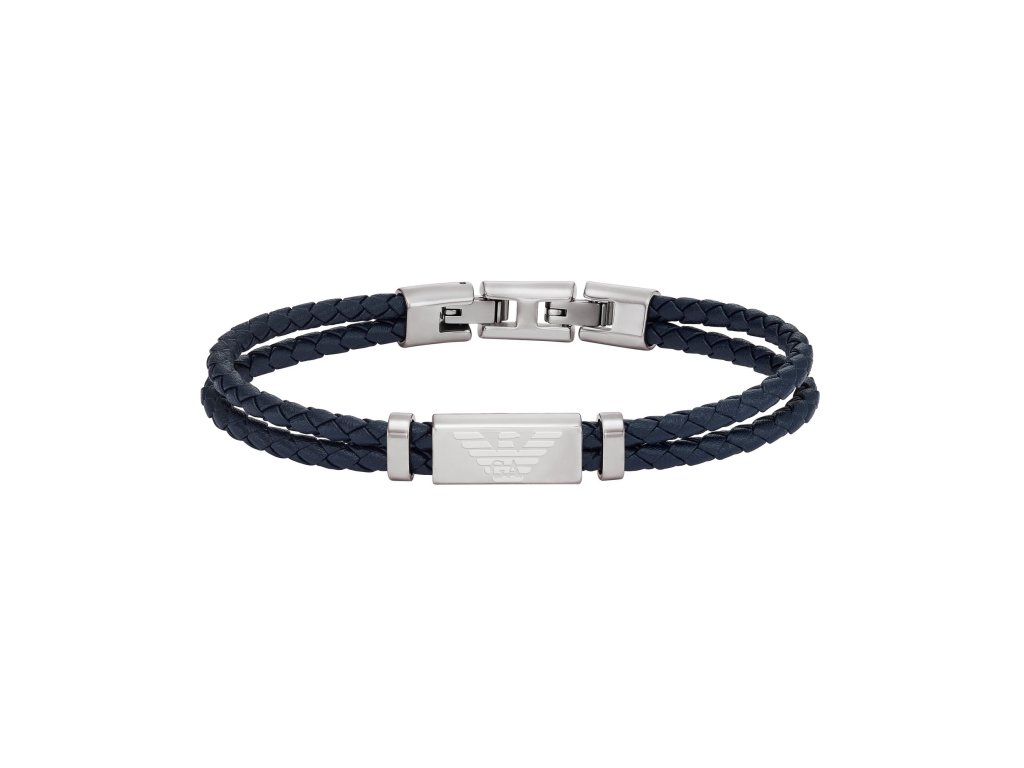 Pánský náramek z tmavomodré kůže od Emporio Armani přináší svěží pohled na klasický styl. Dvojité provedení s efektem propletení a ocelovou ozdobou s logem značky vytváří moderní doplněk, který zaujme svou jednoduchostí i důrazem na detail. Ideální pro muže, kteří oceňují čistý design a značkovou eleganci.