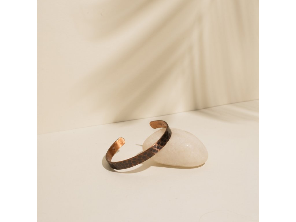 Měď je ceněna pro své antibakteriální účinky i schopnost podporovat tok energie a uzemnění. V ajurvédě má místo jako prvek podporující vitalitu a rovnováhu. Tento náramek se tak stává nejen šperkem, ale i každodenním nástrojem pro vědomější životní styl, a spadá do kategorie non toxic.