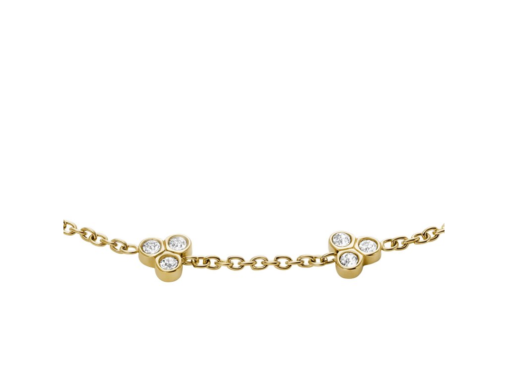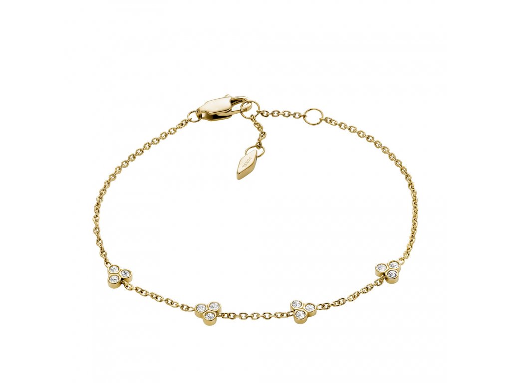 Šperk, který každému zápěstí dodá ladný efekt, to je dámský náramek od Fossil kombinující lesk zlaté barvy a krystalů. Skvěle se hodí do práce, ale bude vás bavit, i když si obléknete klasické tričko a džíny.