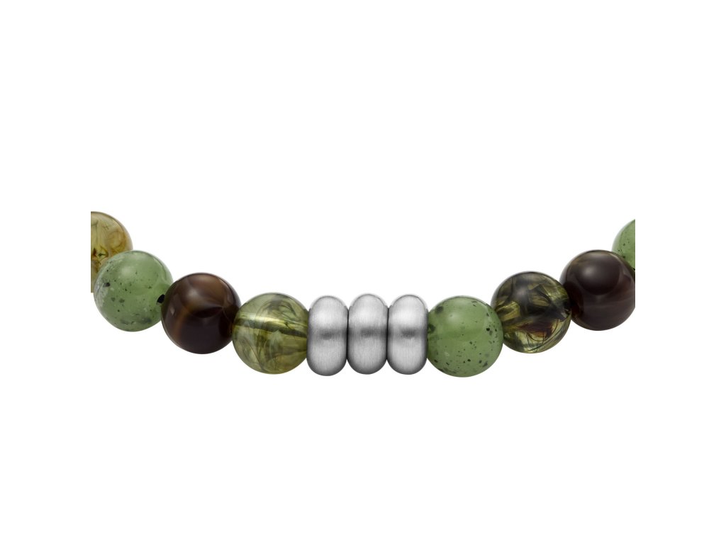 Pánský náramek Fossil All Stacked Up zaujme na první pohled svou originální kombinací korálků v zelené a hnědé barvě. Tento kontrast barev působí svěže a moderně, takže se náramek stane výrazným doplňkem každodenního stylu.