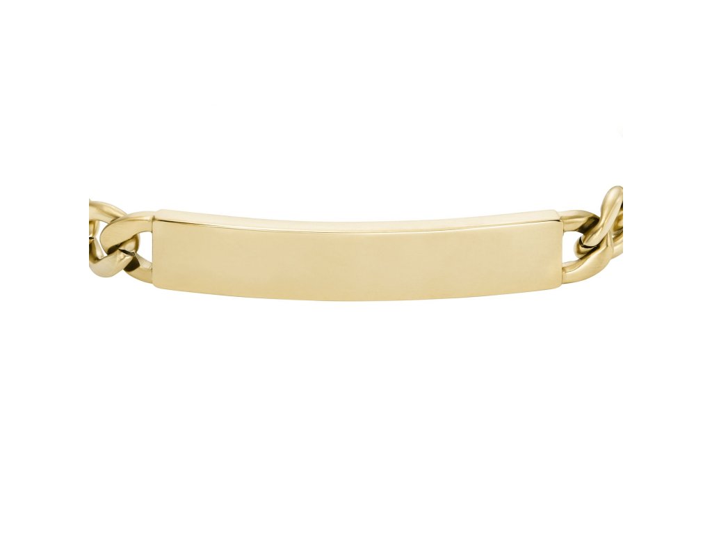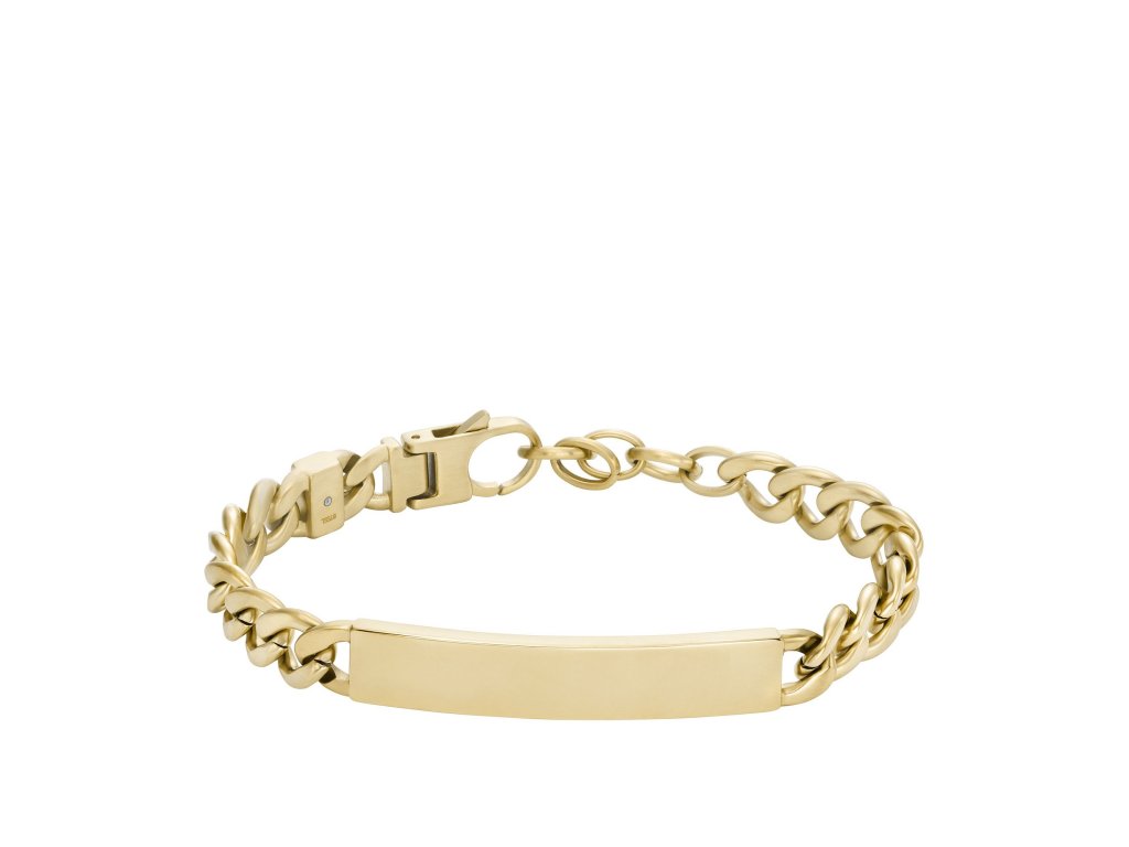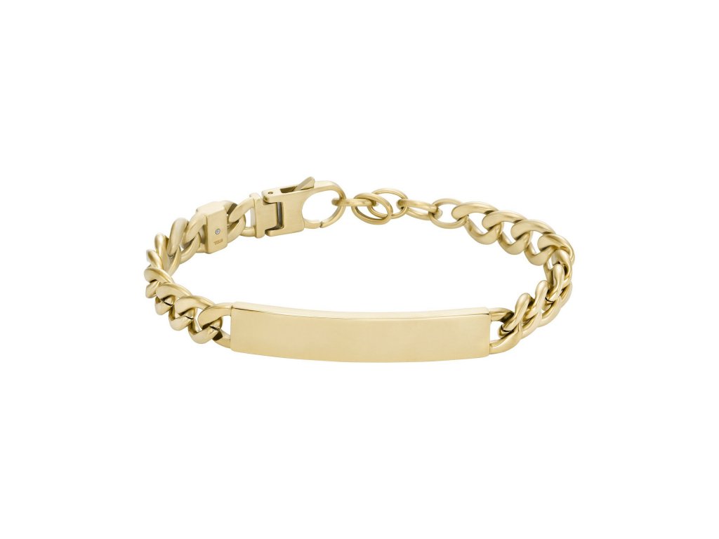 Náramek připomíná řetěz a vyrobený je z kvalitní oceli, která mu dodává mužnost. Zlatá barva ale celý dojem zjemňuje a přináší eleganci a luxus. Zapínání má stylově na karabinku, takže lze jeho délku přizpůsobit velikosti zápěstí.