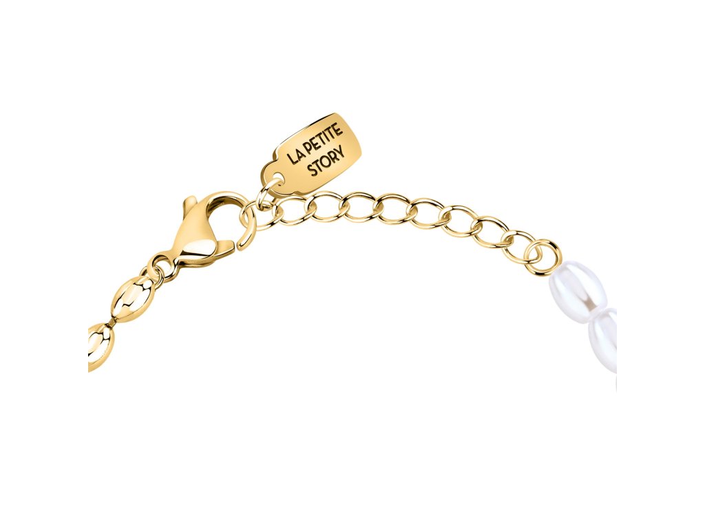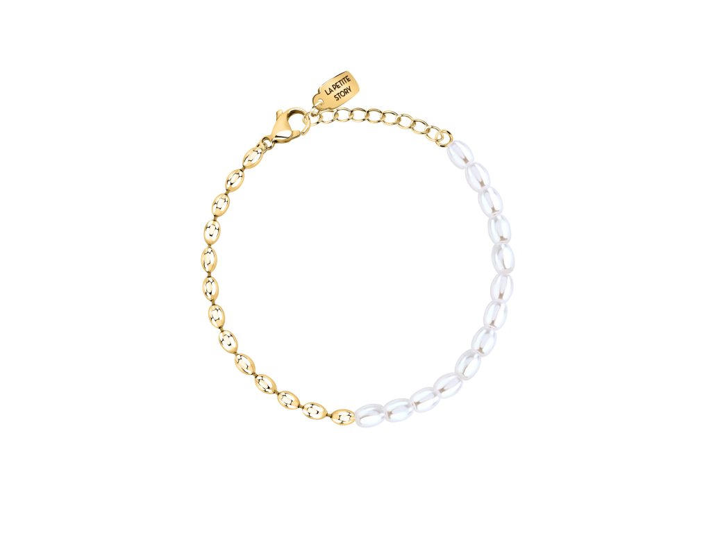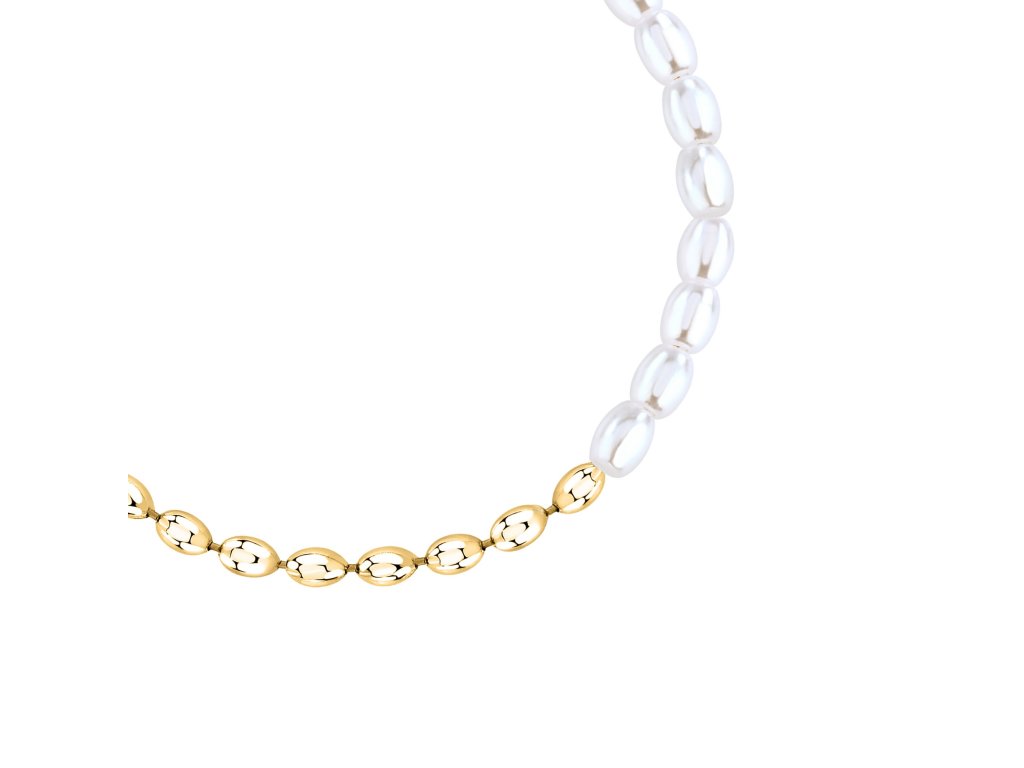 Náramek je vyroben z nerezové oceli ve zlaté barvě a má nastavitelnou délku 16–19 cm. Zlatý lesk dodává šperku eleganci, zatímco bílé syntetické perly přinášejí jemnost a romantický nádech. Spolu tvoří harmonii, která vynikne jak k ležérnímu outfitu, tak k večerním šatům.