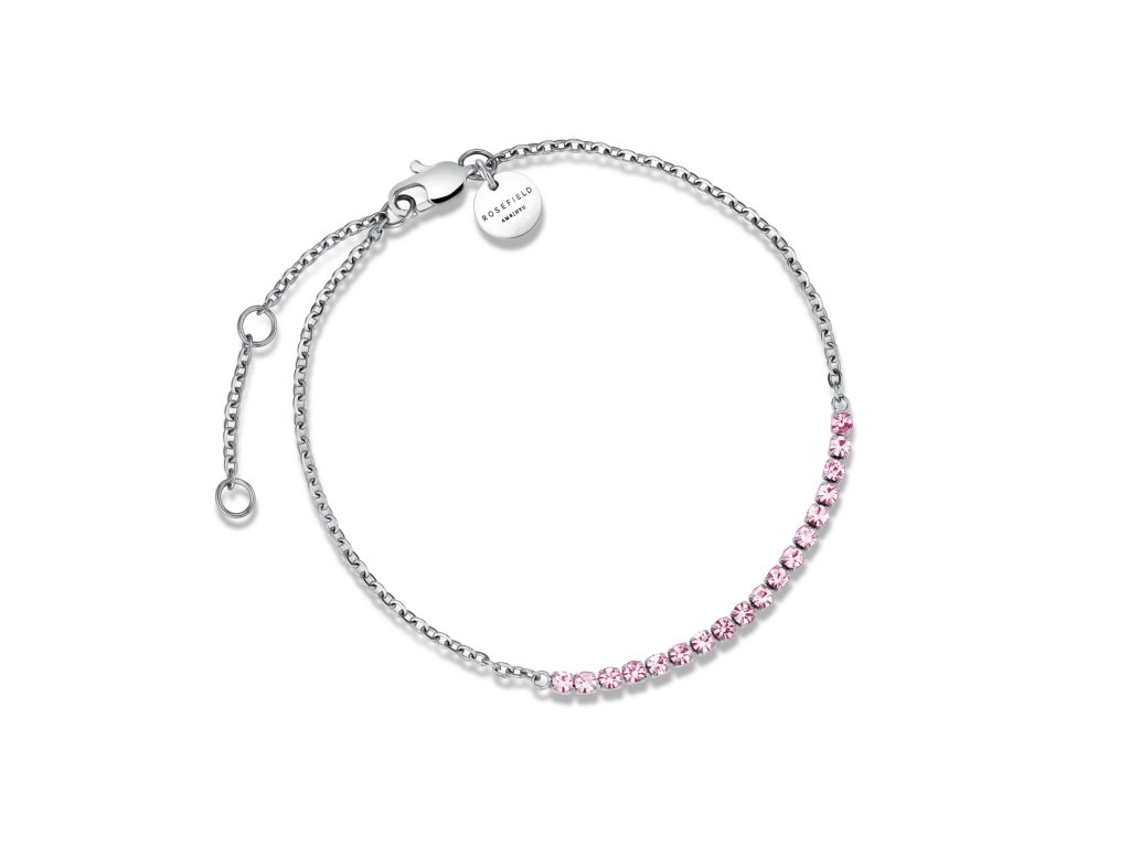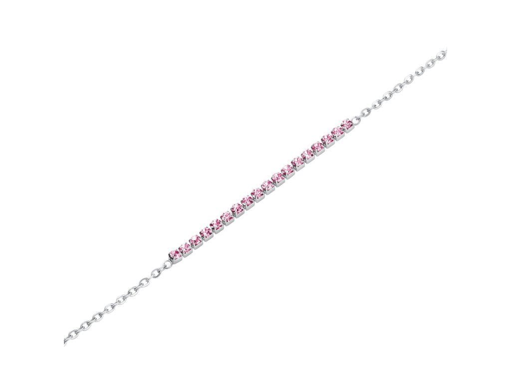 Decentní řetízek s drobnými očky je doplněn zářivými růžovými krystaly, které náramku dodávají dívčí půvab.