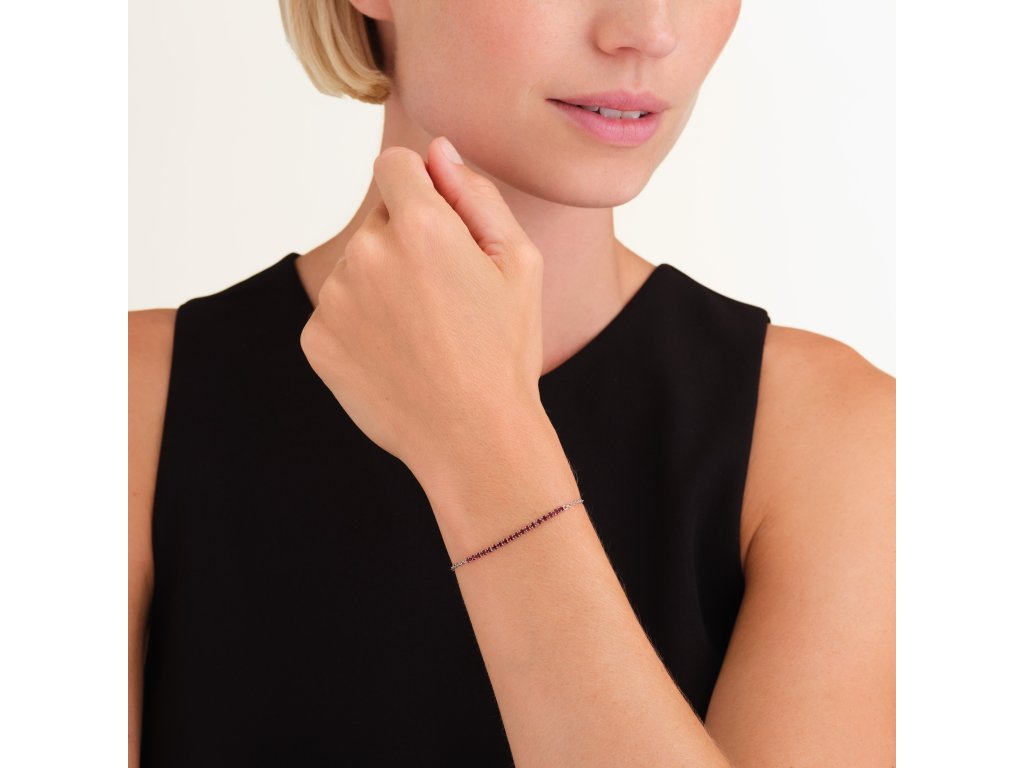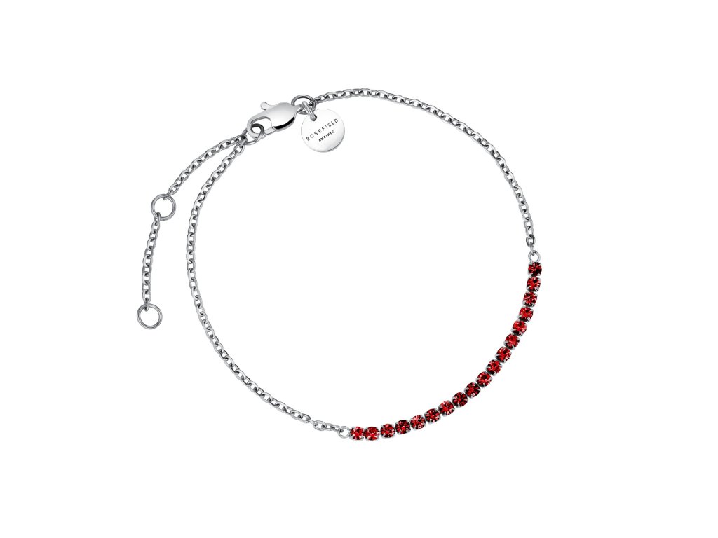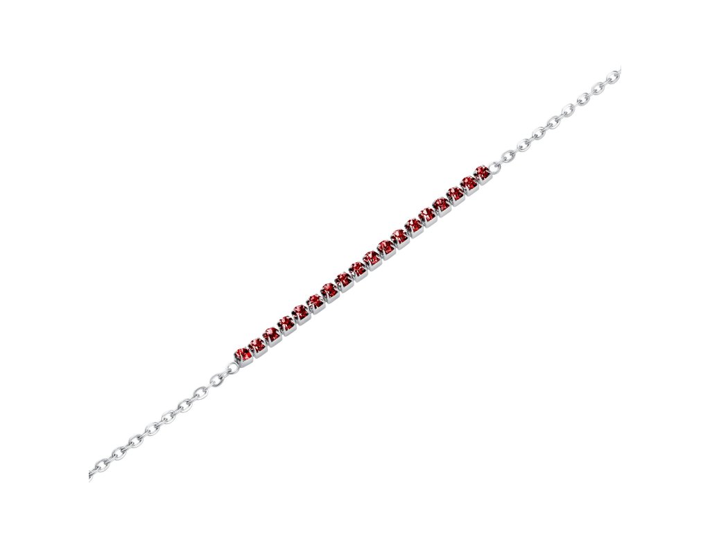 Jemný řetízek s drobnými očky je zdobený zářivými krystaly v červené barvě, které šperku dodávají tajemný charismatický vzhled.