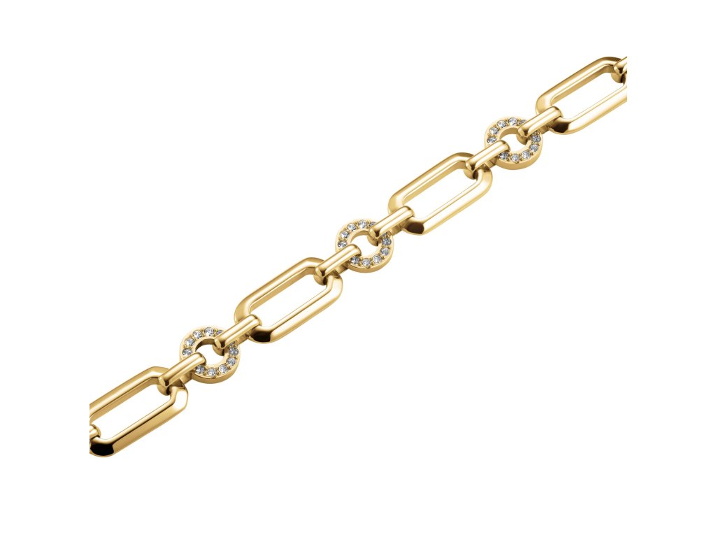 Ve výrazném designu ve stylu řetězu se střídají protáhlá a kulatá očka, tři z nich jsou osazena zářivými krystaly, které dodají každému gestu zářivý lesk a luxusní nádech.