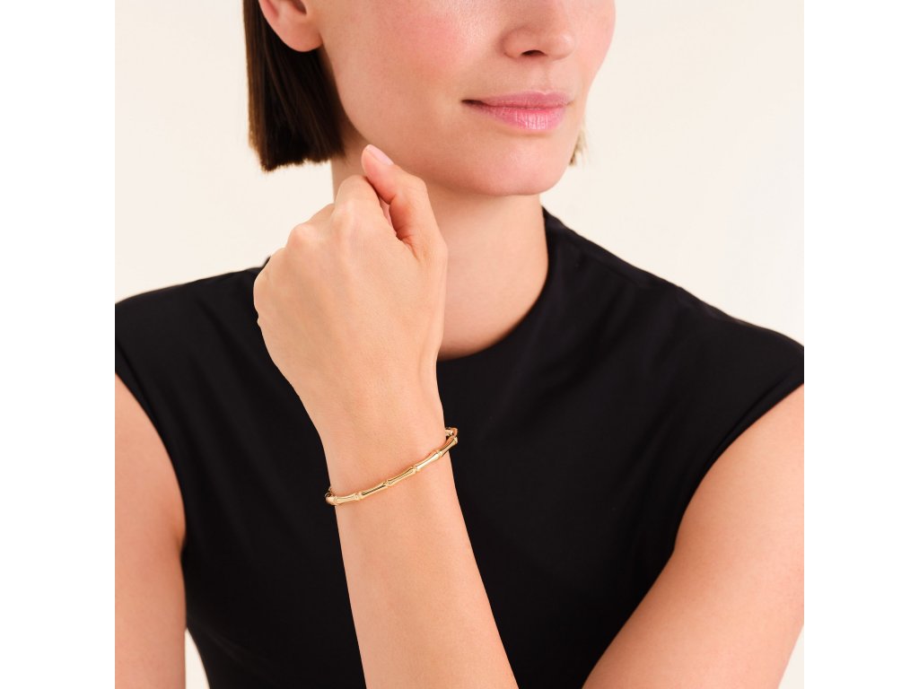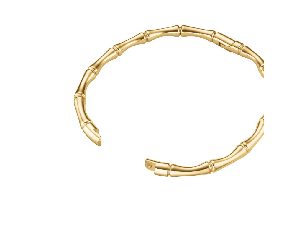 Robustní tvar inspirovaný stonkem bambusu propůjčuje šperku přirozenou plasticitu a strukturu, která zaujme na první pohled. Pozlacená nerezová ocel zajišťuje trvanlivost a elegantní zlatý tón, který skvěle vynikne jak samostatně, tak v kombinaci s dalšími šperky.