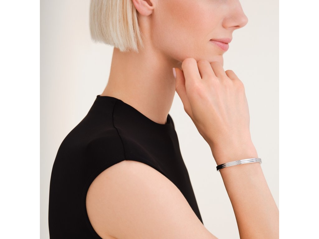 Vyrobený je z nerezové oceli v pevném oválném tvaru o rozměrech 6 × 5 cm, pohodlně sedí na zápěstí a snadno se kombinuje s dalšími šperky. Stylový doplněk pro každodenní nošení i vrstvení.