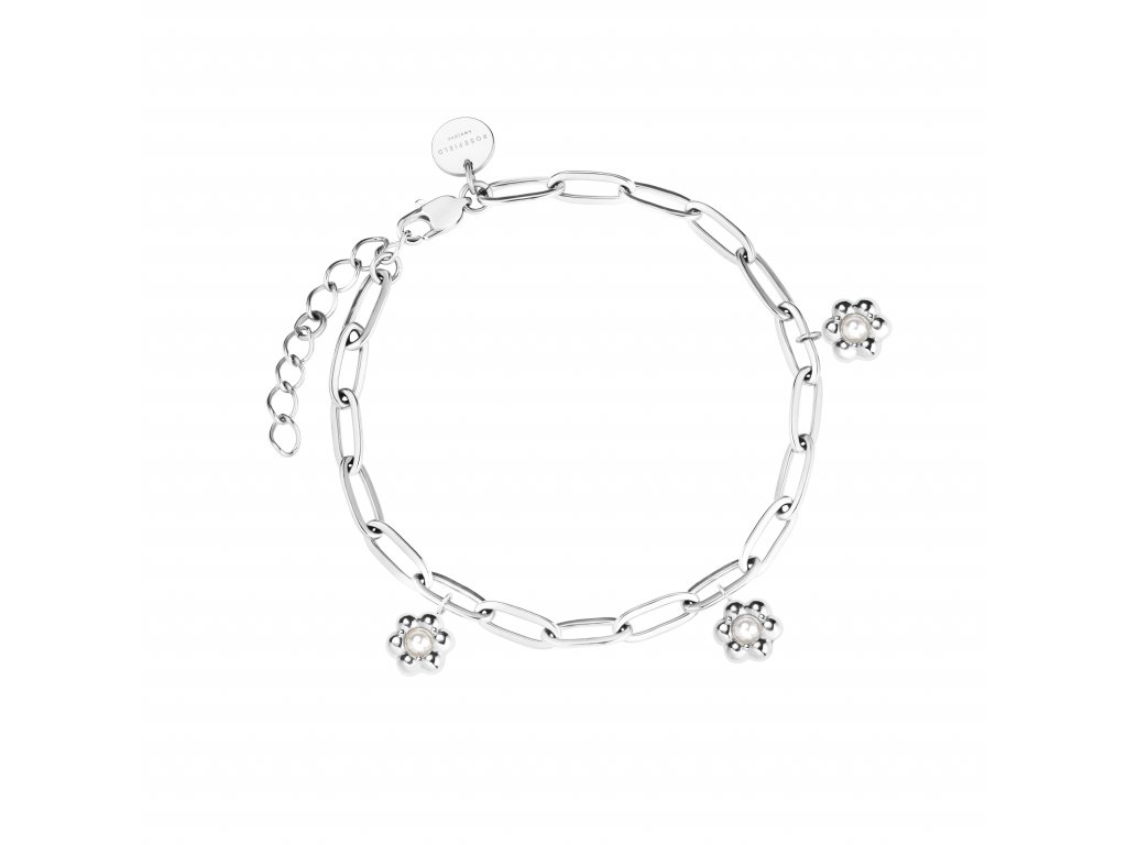 Náramek Rosefield, nerezová ocel, rhodiovaný, květiny, perličky, nastavitelná délka 16,5 - 19,5 cm.Doplňkové parametry
