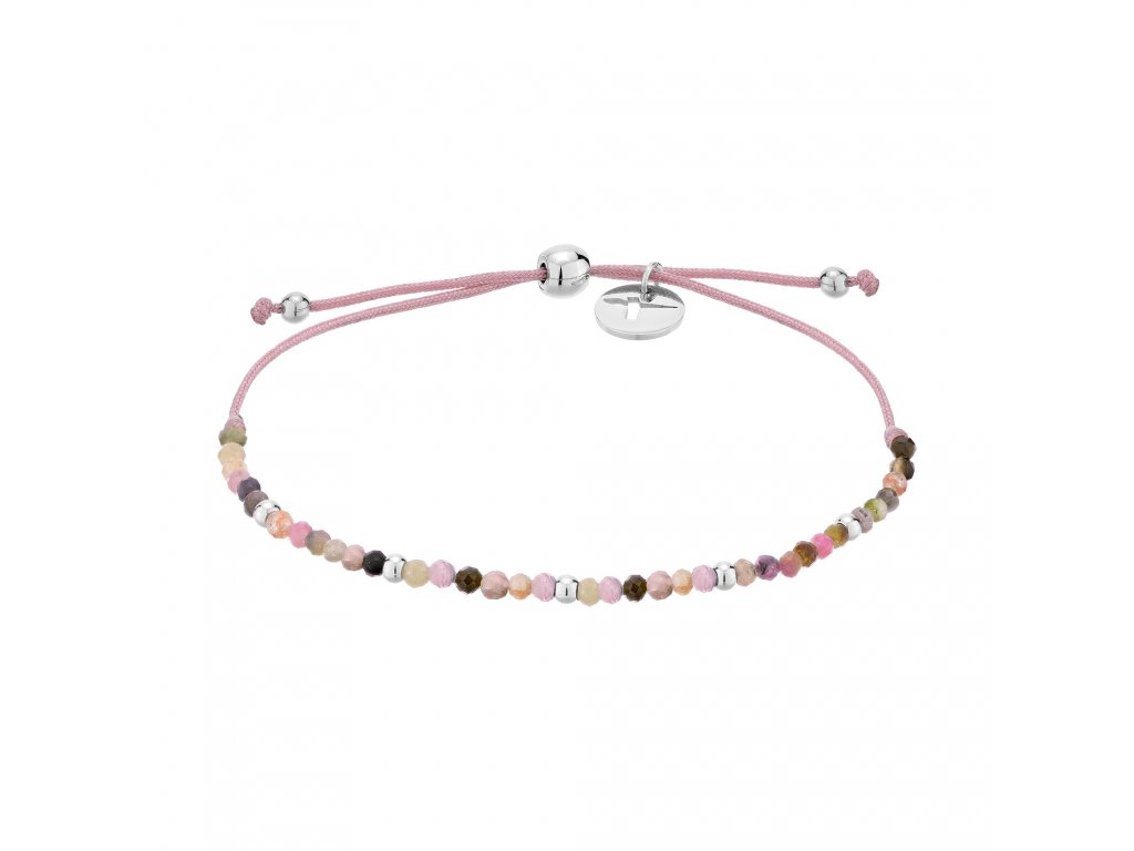 Na výrobu náramku byla použita textilní šňůrka. Délka tohoto náramku je nastavitelná. Náramek má růžovou barvu a maximální délku 21 cm.