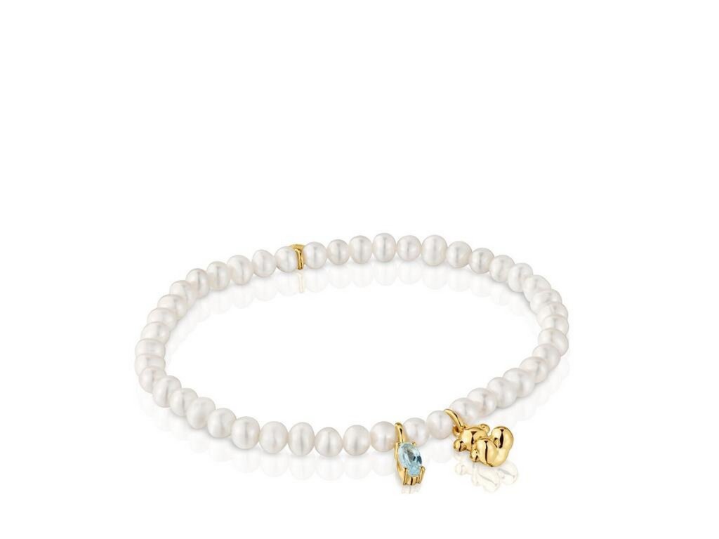 Pravidelně navlečené perly vytvářejí čistou linii, zatímco medvídek a topaz dodávají šperku charakteristický detail, který podtrhuje ženskost i osobitý styl značky TOUS.