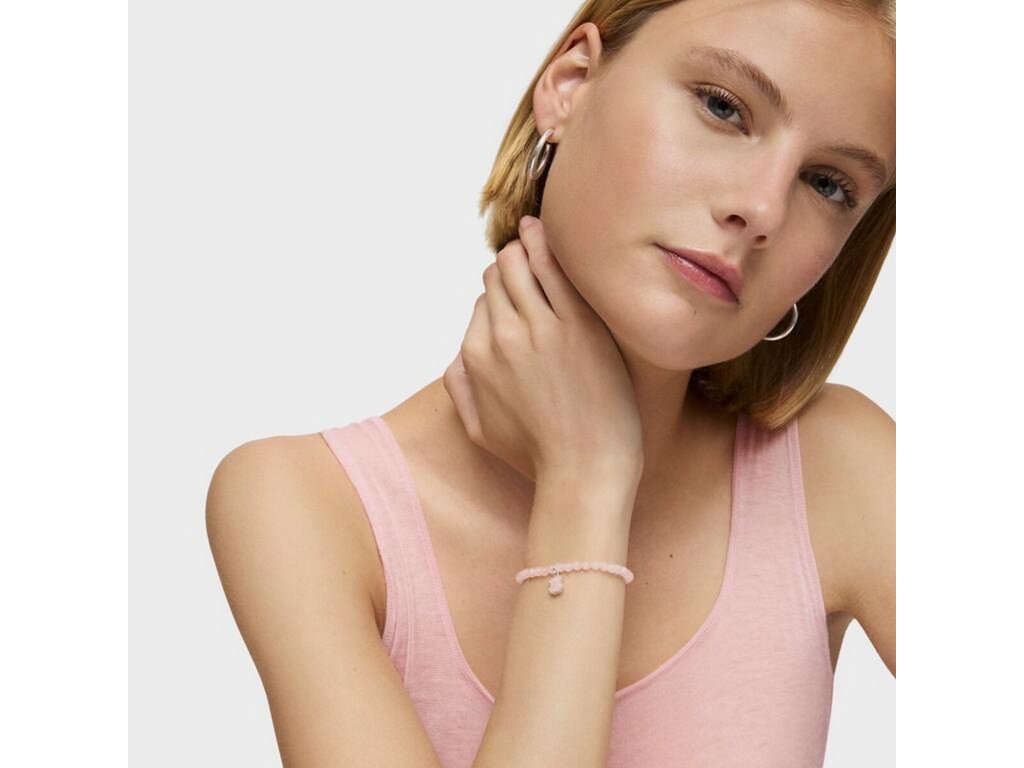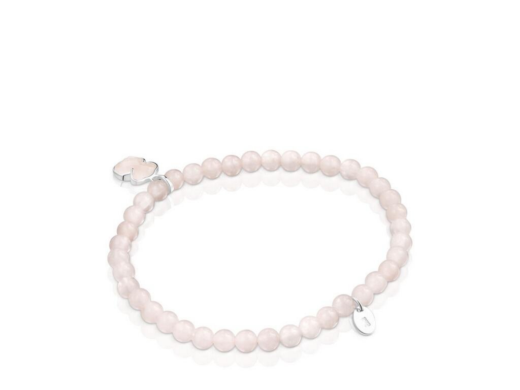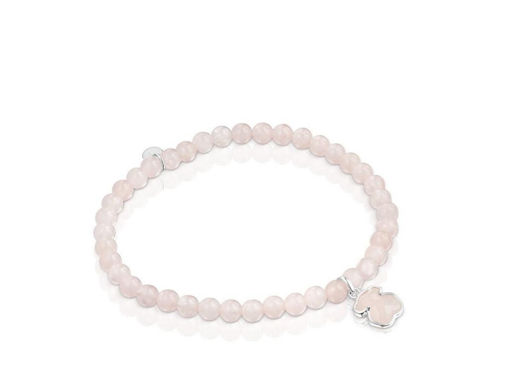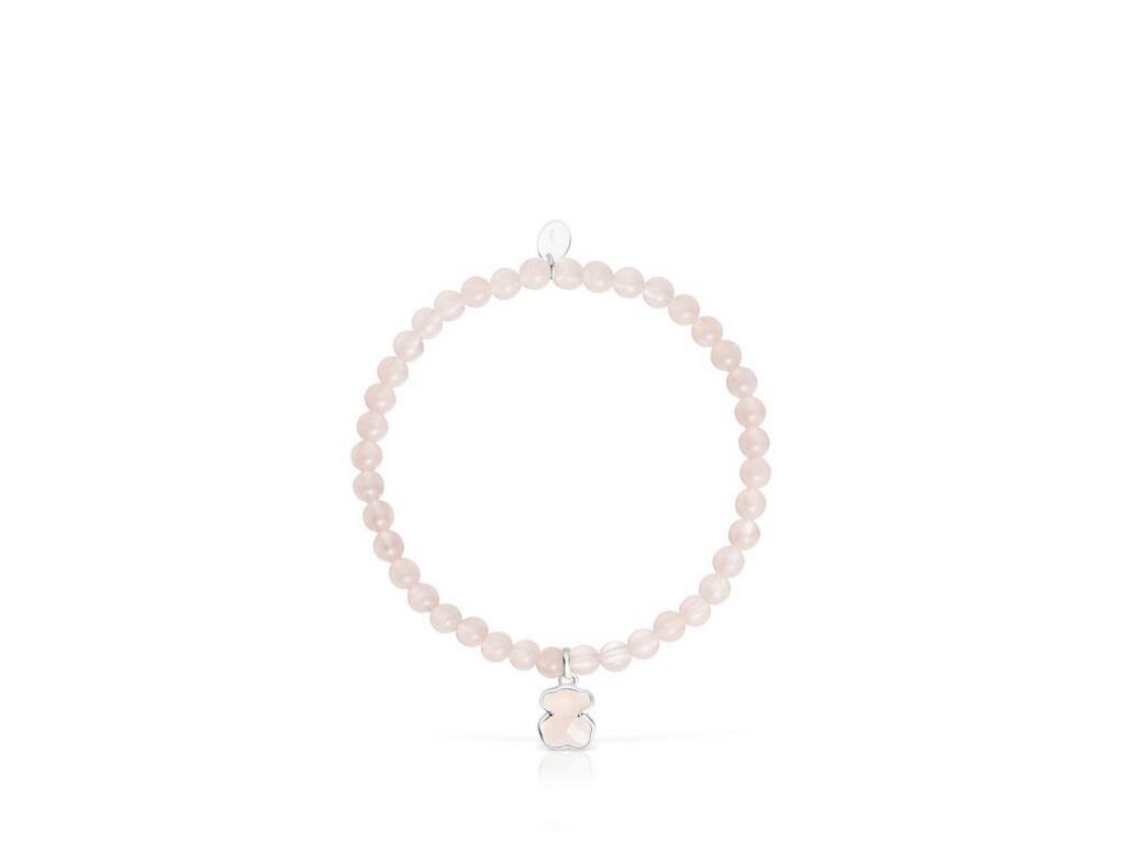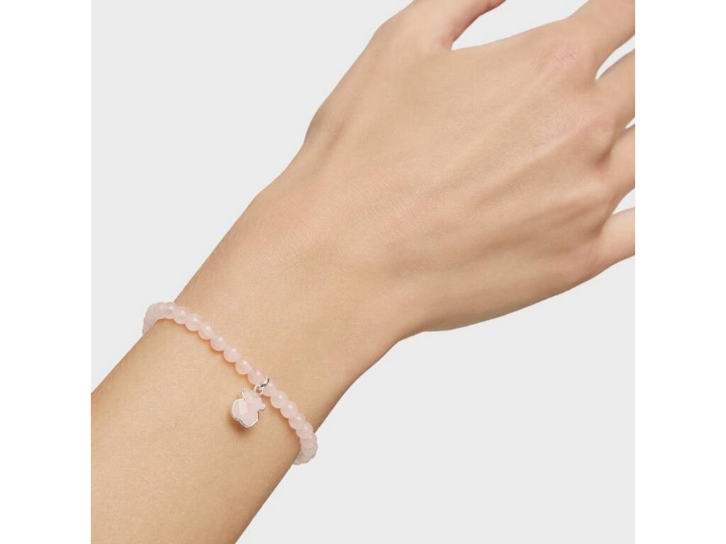Růženínové korálky v ženských tónech působí něžně a vyrovnaně. Stříbrný medvídek o velikosti 9 mm, osazený růženínem, tvoří přirozený středobod celého šperku a dodává mu charakteristický dotek značky TOUS.