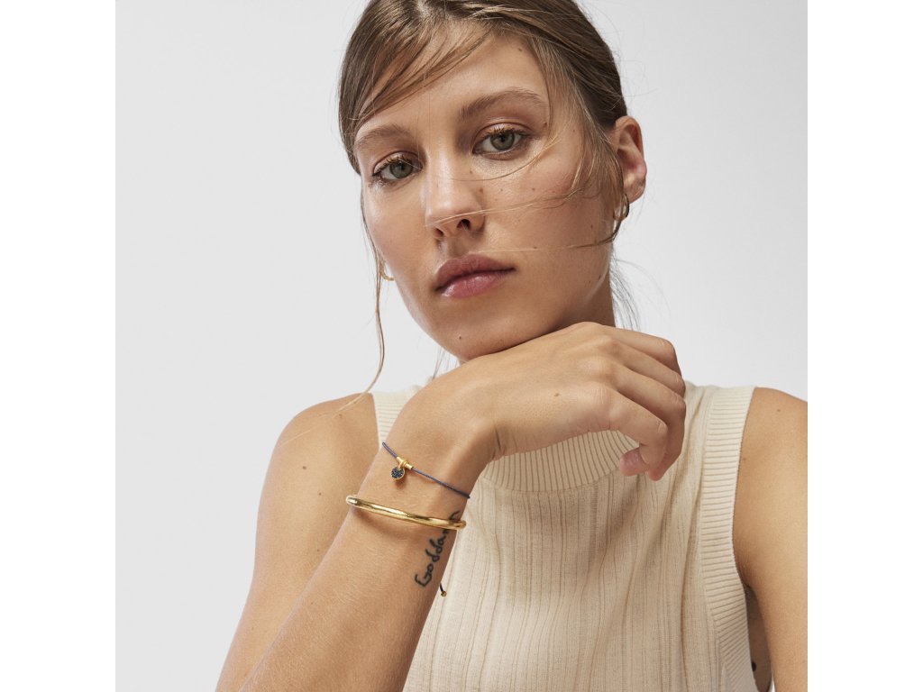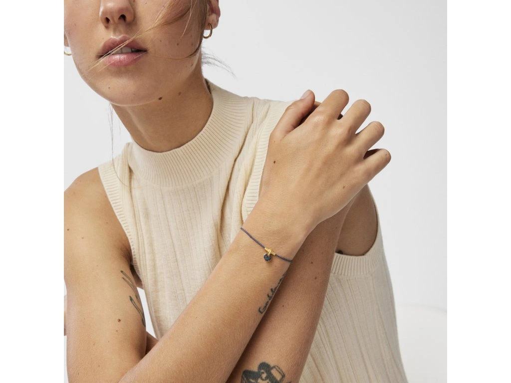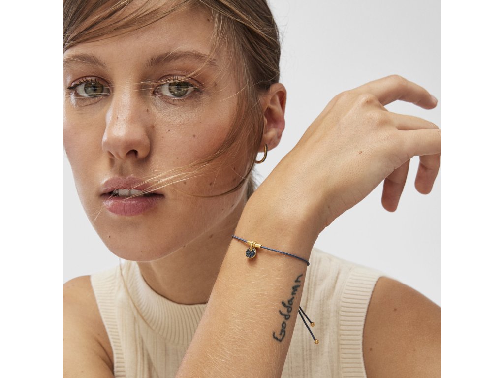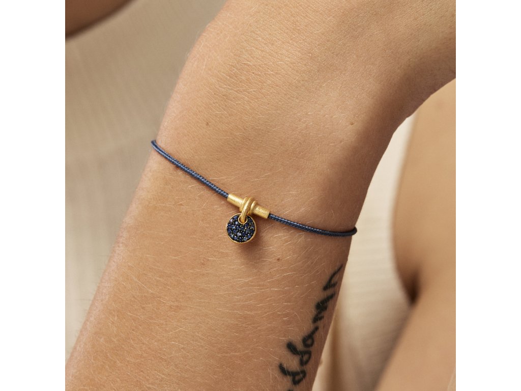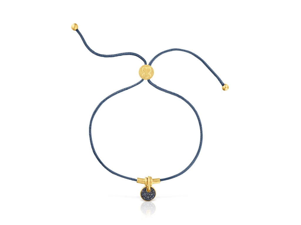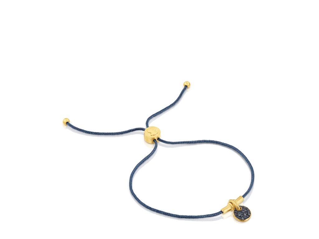 Náramek Tous Luah vyrobený ze žlutého stříbra Vermeil s pavé a modrými safíry v různých odstínech s modrou vrstvou rhodia a modrou šňůrkou. Velikost měsíce: 7 mm. Délku lze upravit díky zapínání na zip: 25,5 cm. Technologie výroby: odlévání. Stříbro Vermeil – vysoce kvalitní stříbro s nejvyšší ryzostí 925/1000 pokryté vrstvou 18K zlata.Doplňkové parametry
