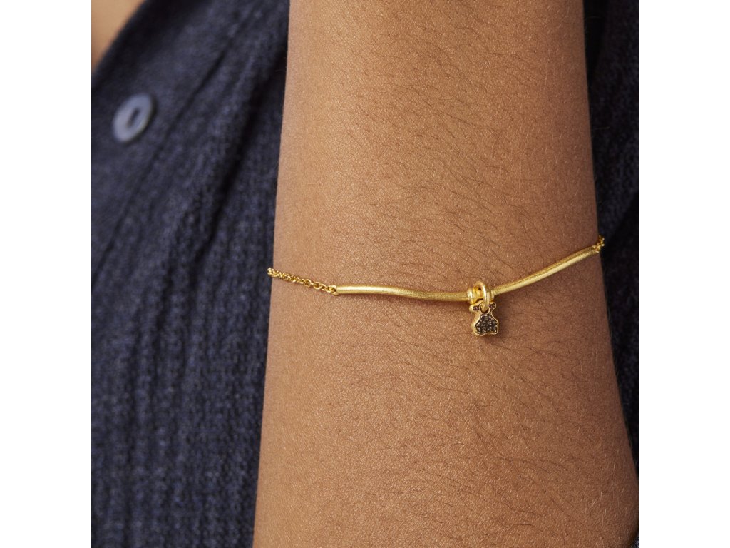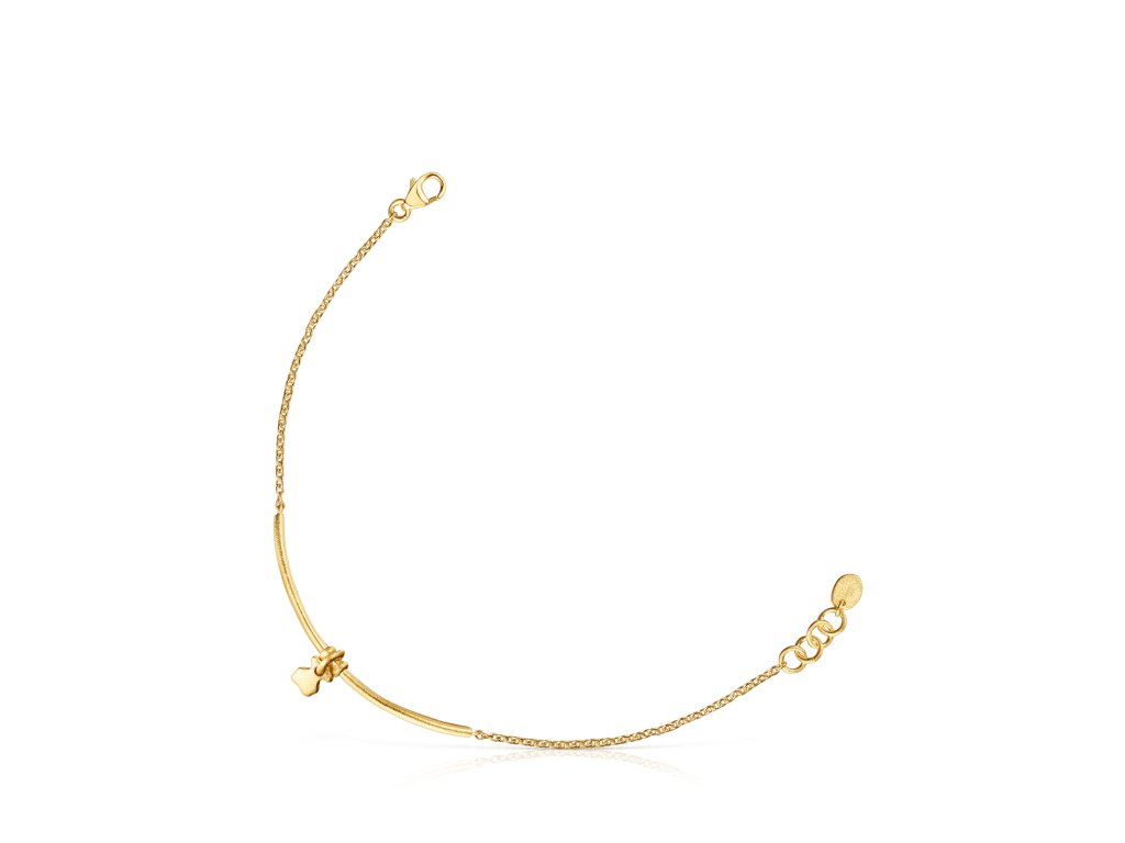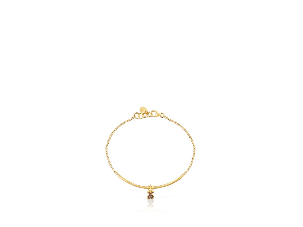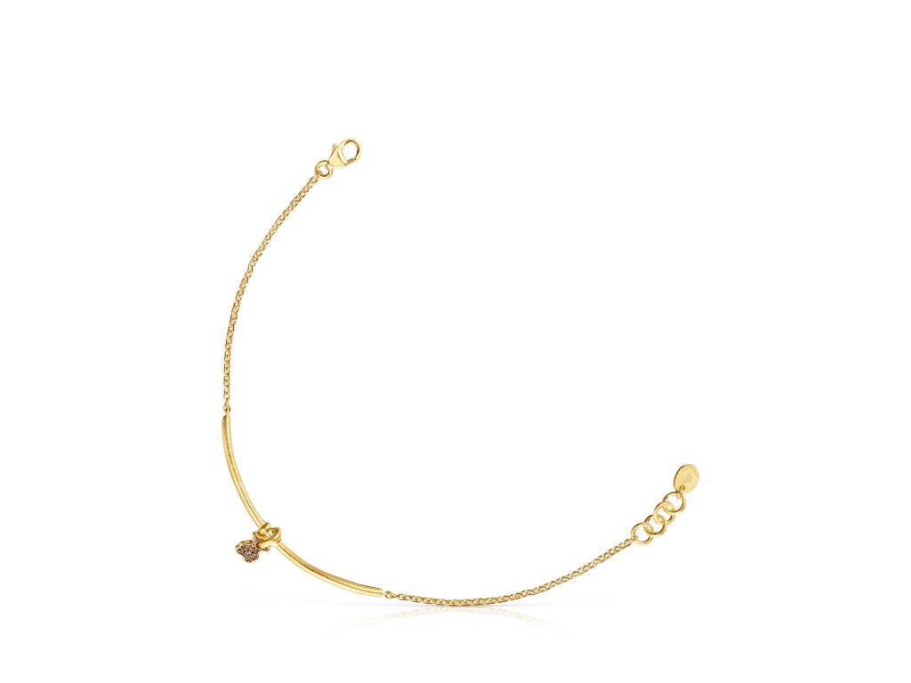Polopevný náramek Tous Luah vyrobený ze žlutého stříbra Vermeil s motivem medvídka, který oživuje záhněda. Velikost medvídka: 0,6 cm. Pevná část náramku má délku 5 cm. Délka náramku: 17,5 cm. Technologie výroby: odlévání. Stříbro Vermeil – vysoce kvalitní stříbro s nejvyšší ryzostí 925 pokryté vrstvou 18K zlata.Doplňkové parametry