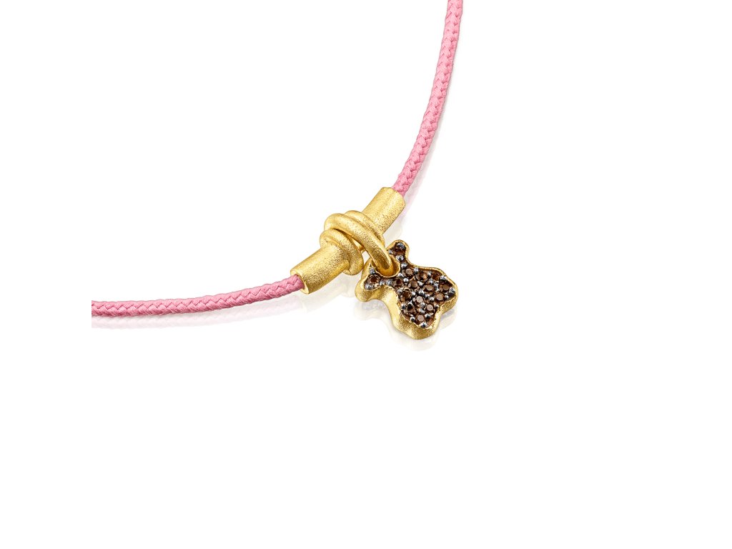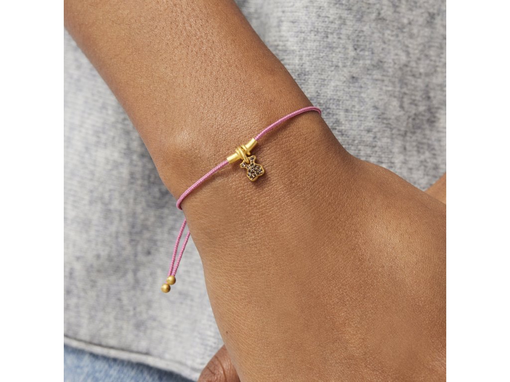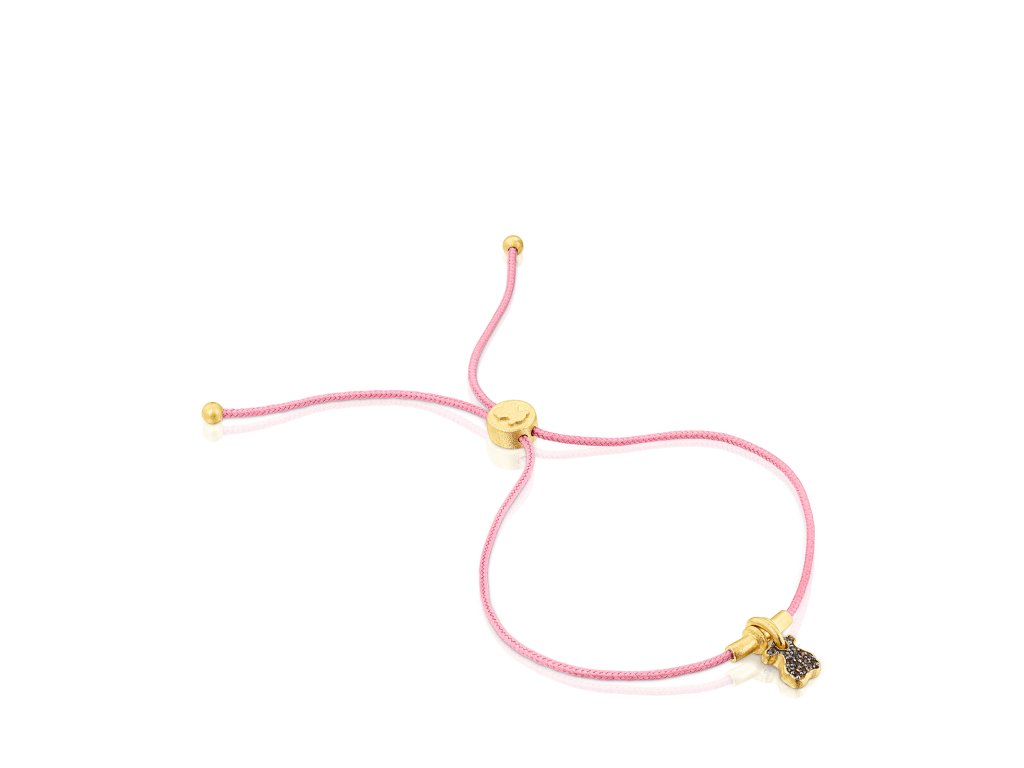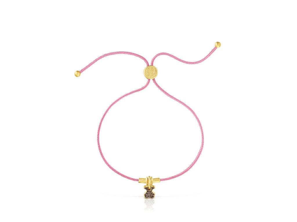 Náramek Tous Luah vyrobený ze žlutého stříbra Vermeil a růžové šňůrky. Motiv medvídka oživuje záhněda. Velikost medvídka: 0,7 cm. Délku lze upravit: max. 25,5 cm. Technologie výroby: odlévání. Stříbro Vermeil – vysoce kvalitní stříbro s nejvyšší ryzostí 925 pokryté vrstvou 18K zlata.Doplňkové parametry