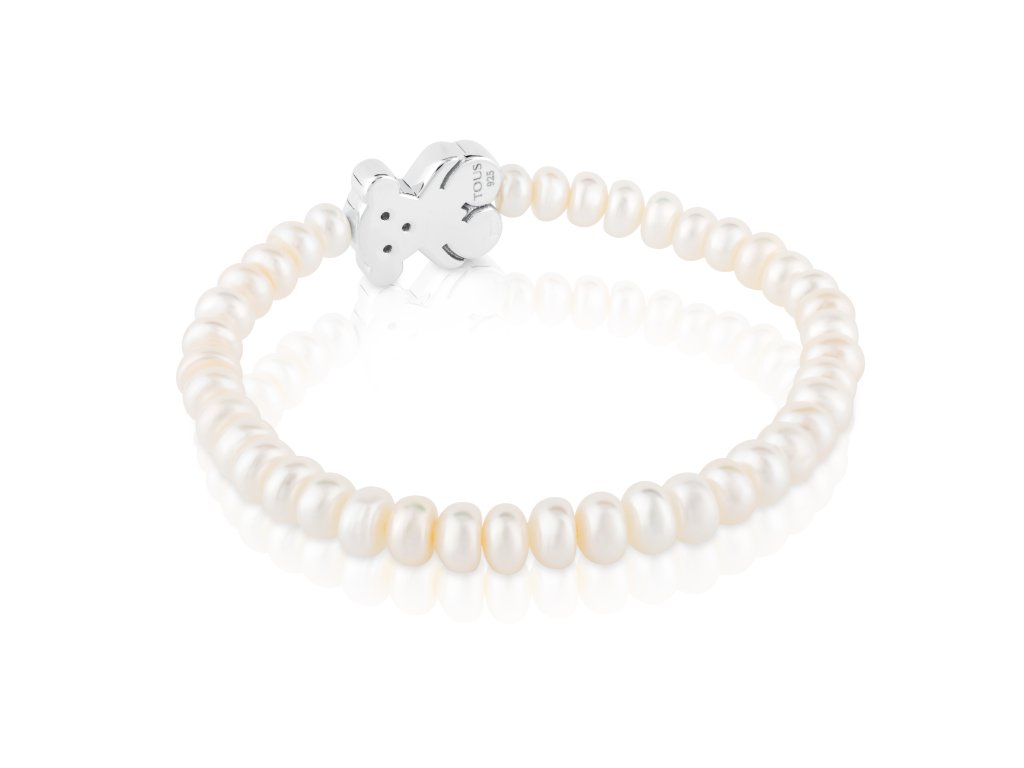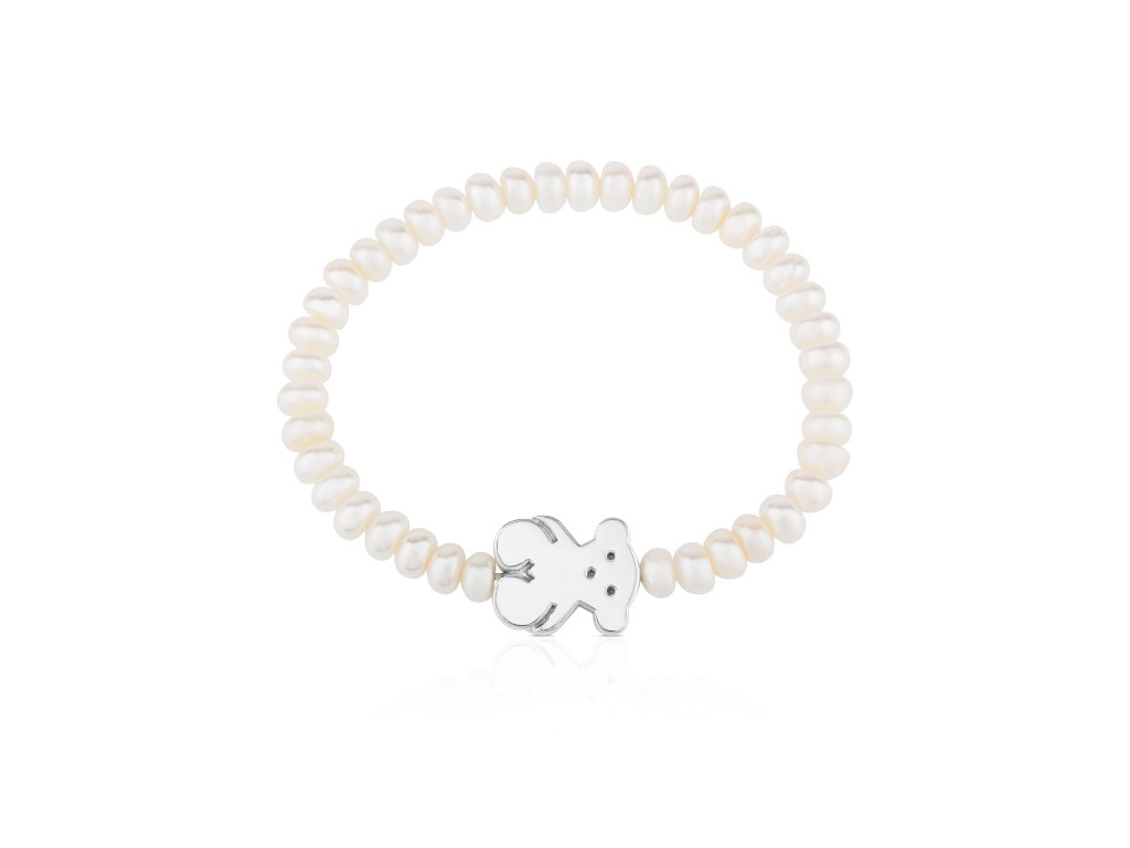 Elastický náramek Tous Sweet Dolls vyrobený ze stříbra ryzosti 925/1000 a pěstovaných sladkovodních perel. Velikost motivu medvídka: 1,5 cm. Technologie výroby: elektroformování bez jádra.Doplňkové parametry