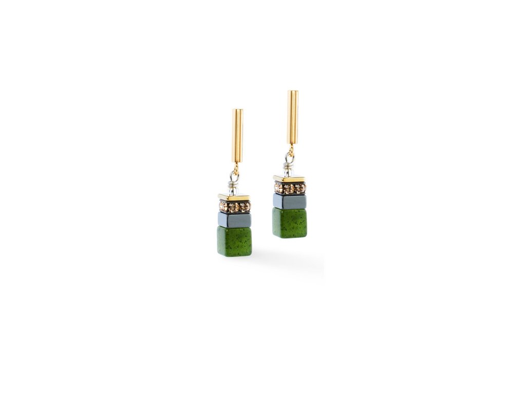Dámské náušnice Coeur de Lion Iconic GeoCUBE zaujmou harmonickým propojením zlatého tónu s přírodními minerály, které šperku dodávají klidný, elegantní výraz. Visací provedení působí lehce a podtrhuje vyváženou kompozici barev i tvarů.
