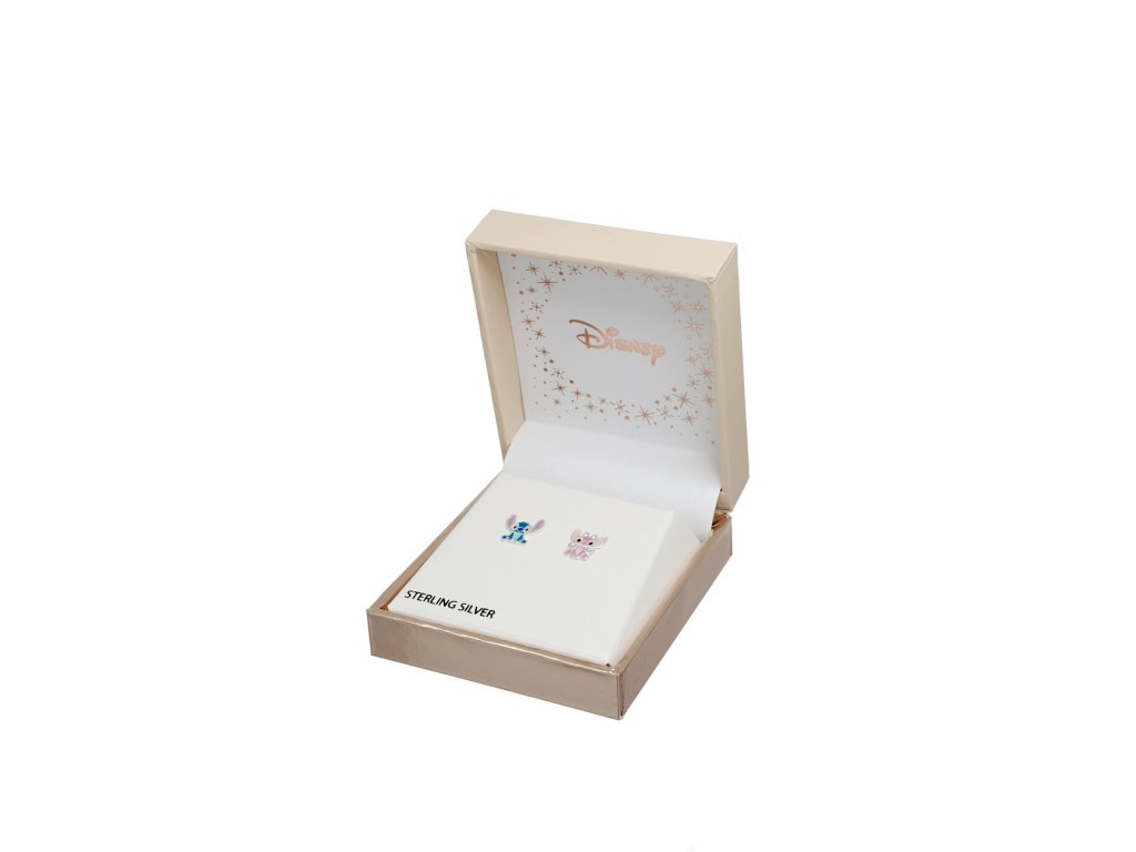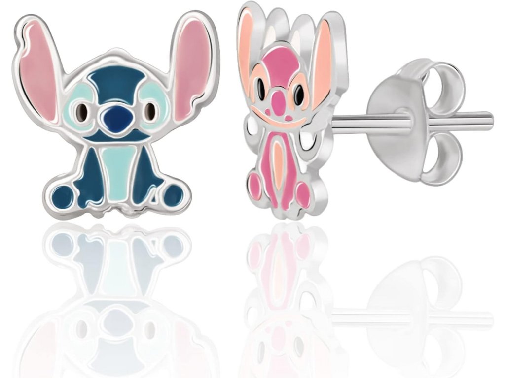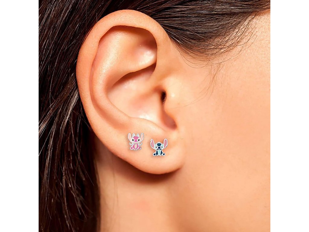 Náušnice ve tvaru nestárnoucí pohádkové dvojice Lilo a Stitche od Disney zaujmou asymetričností a barvami. Vyrobené jsou z velmi kvalitního stříbra ryzosti 925 s lesklou povrchovou úpravou, jenž je dekorováno vícebarevným smaltem. Zapínají se na klasickou puzetku, která zajišťuje pohodlné nošení. Tyto dětské náušnice jsou dodávány ve stylové krabičce. Váha šperku je 0,8 g.