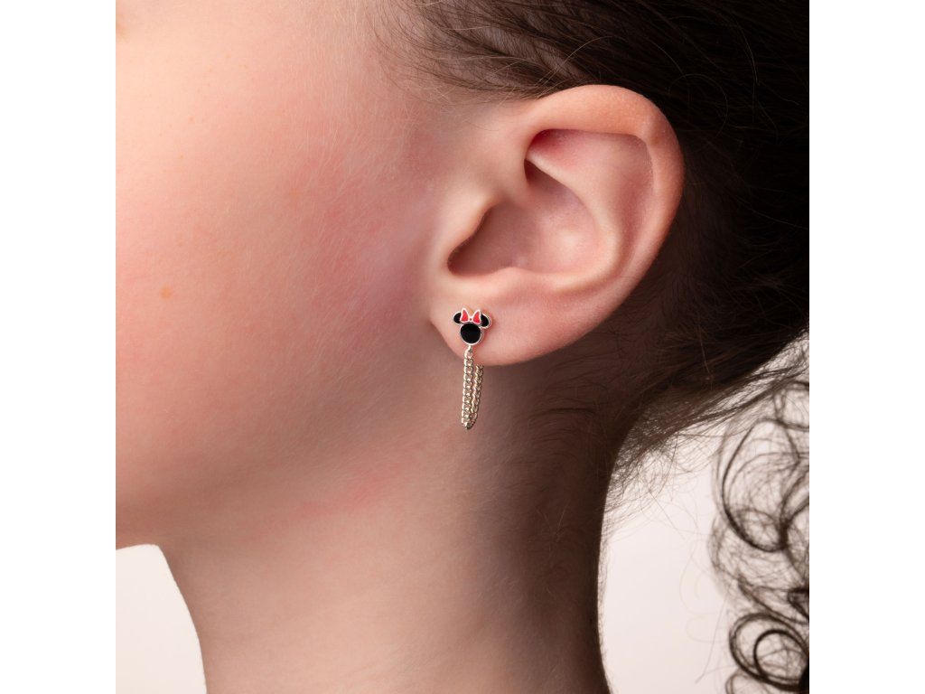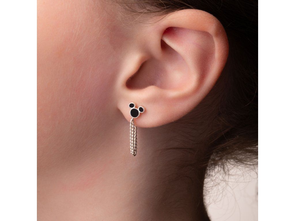 Tyto stříbrné dětské náušnice v designu řětízku a tvaru hlavy Mickey a Minnie Mouse potěší všechny malé milovníky klasických disneyovských postaviček. Každá náušnice je jiná — jedna zobrazuje Mickeyho, druhá Minnie — což dodává šperku hravý a originální charakter.