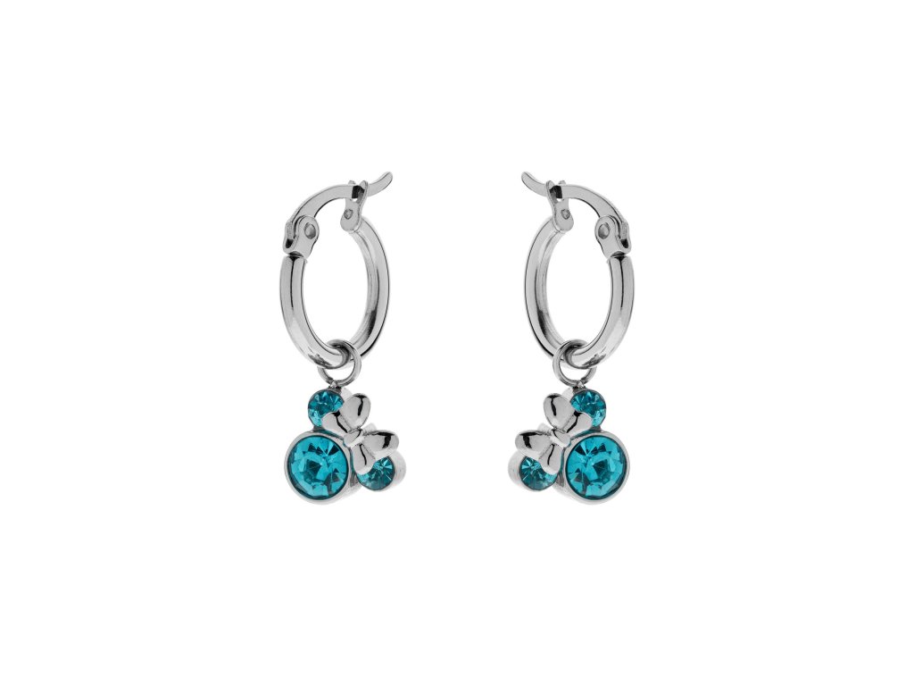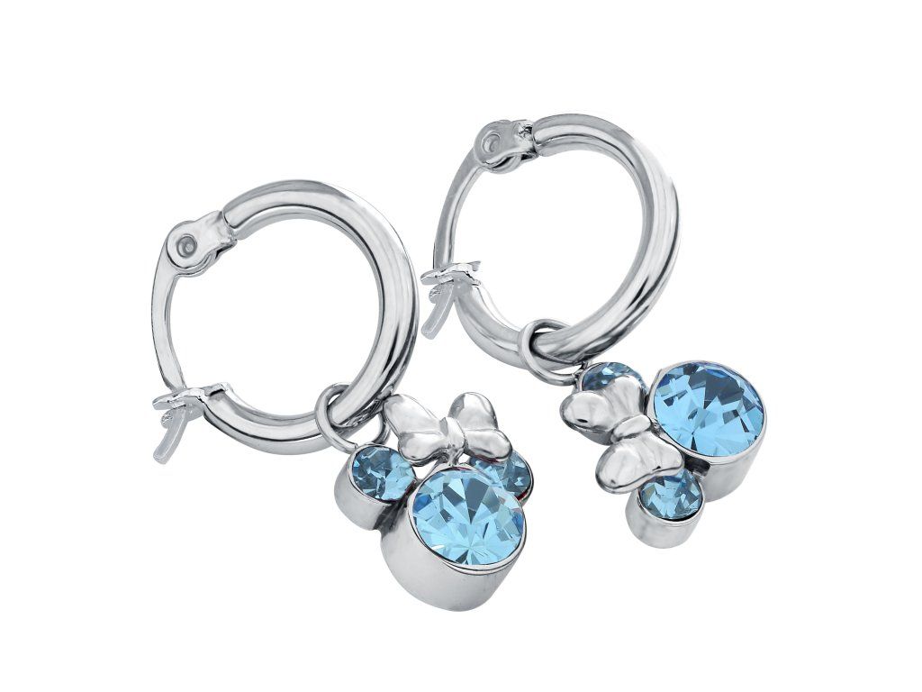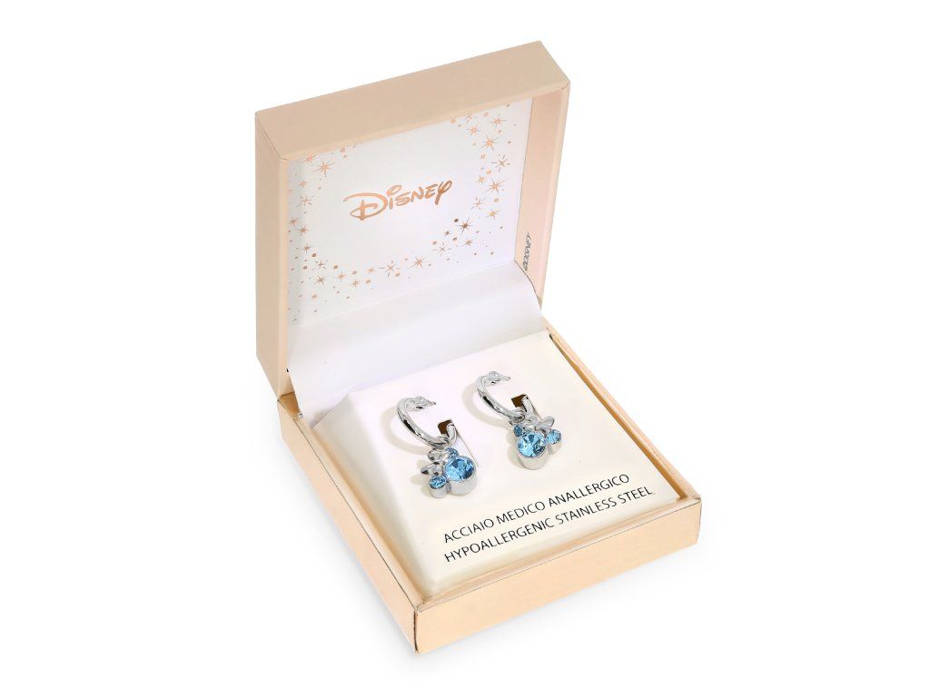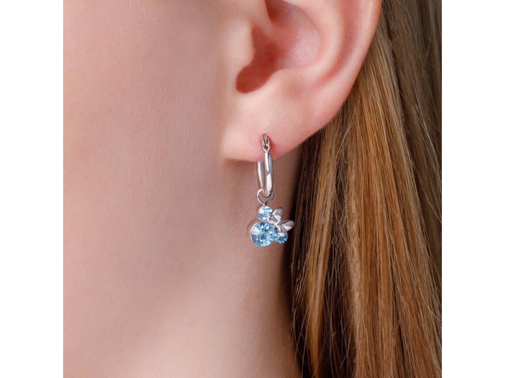 Tyto dětské visací náušnice s přívěskem Minnie Mouse a modrými krystaly potěší všechny malé fanoušky pohádkového světa Disney. Ikonický tvar hlavy Minnie v kombinaci se zářivými modrými krystaly vytváří hravý, ale zároveň elegantní vzhled.