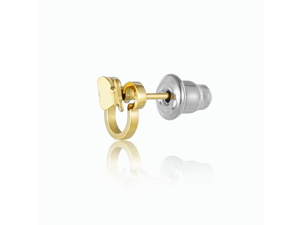 Drobné peckové náušnice mají jednoduchý tvar hlavy oblíbené komiksové myšky a jsou vyrobené z nerezové oceli, která je pozlacena. Díky svému minimalistickému provedení jsou velmi univerzálním šperkem, který se hodí pro děti i dospělé.