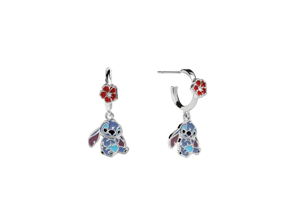 Tyto roztomilé dětské visací náušnice s motivem Stitche a ibišku v sobě spojují hravý design a tropickou atmosféru světa Lilo & Stitch. Barevný smalt v modrých a červených tónech zvýrazňuje ikonické motivy a dodává náušnicím veselý, výrazný vzhled.