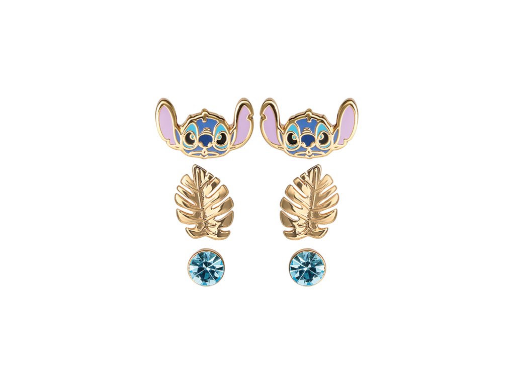 Tento roztomilý set dětských náušnic s motivem Stitch, palmového listu ve zlaté barvě a pecek s modrým krystalem potěší všechny malé fanoušky pohádkového světa Lilo & Stitch. Tři různé motivy umožňují snadno měnit styl podle nálady a přinášejí hravost i tropickou atmosféru.