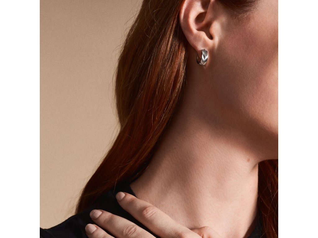 Náušnice jsou vyrobené z kvalitní nerezové oceli. Jejich jemná lineární textura jiskří ve světle.